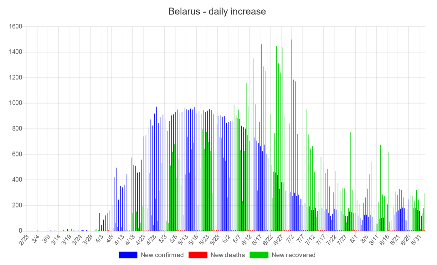 Ежедневный рост заболеваний коронавирусом COVID19 в Беларуси: