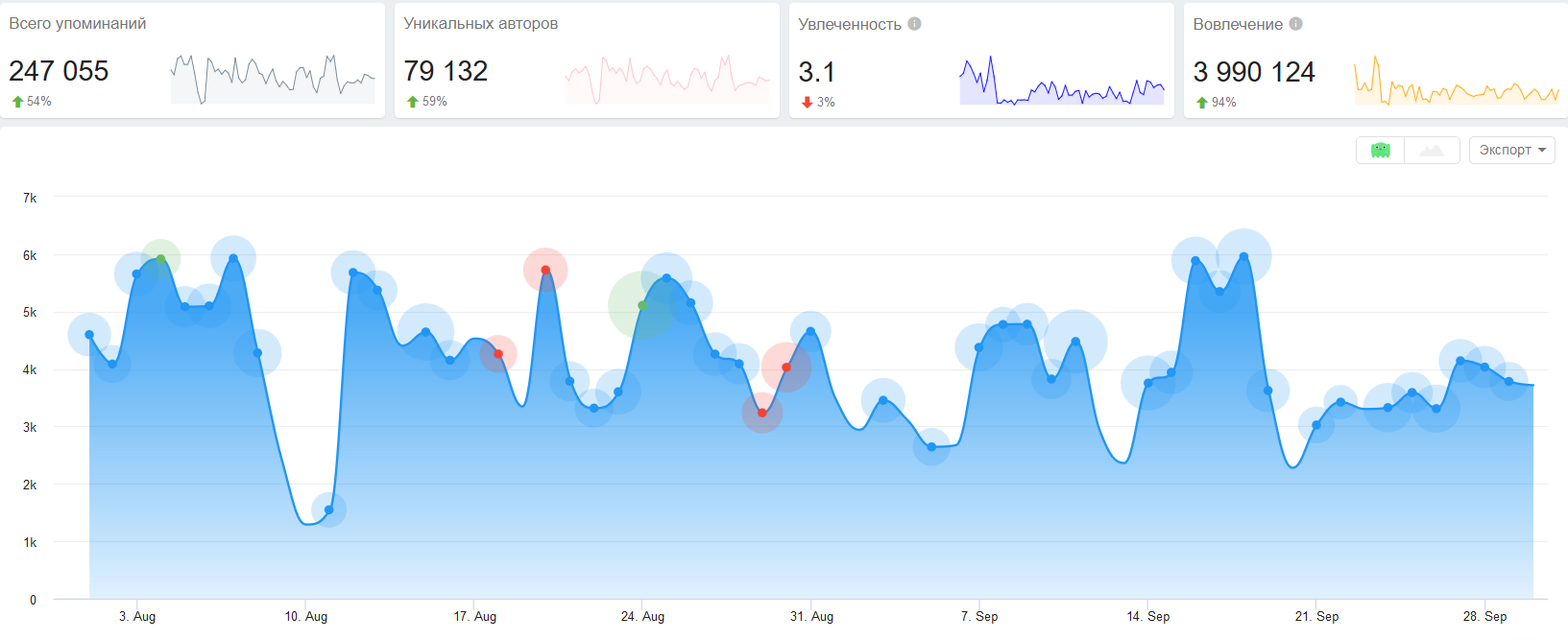 Начнем с общего анализа упоминаний темы коронавирусной пандемии COVID-19 в социальных медиа в августе-сентябре 2020 года. Для этого воспользуемся платформой мониторинга социальных медиа YouScan.