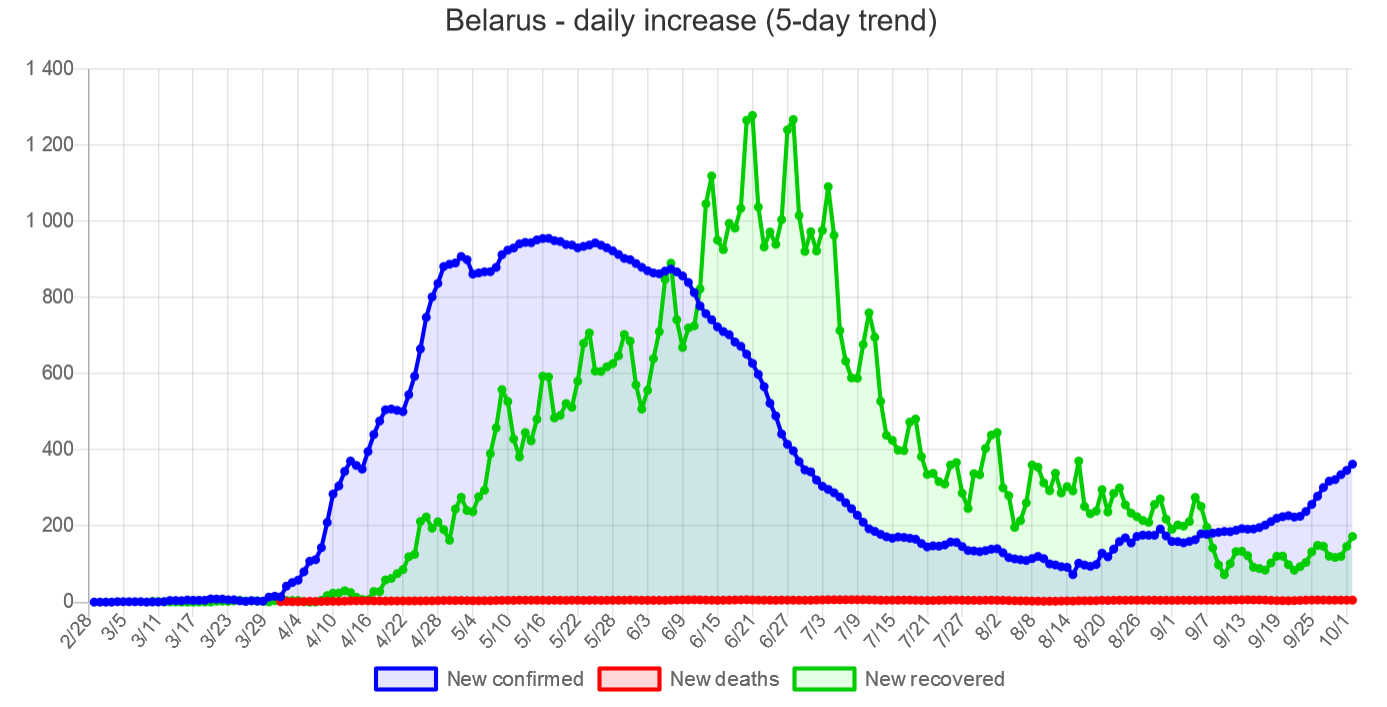 В Беларуси фиксируется рост заболеваемости COVID19 по ежедневно публикуемым данным Министерства здравоохранения Республики Беларусь.