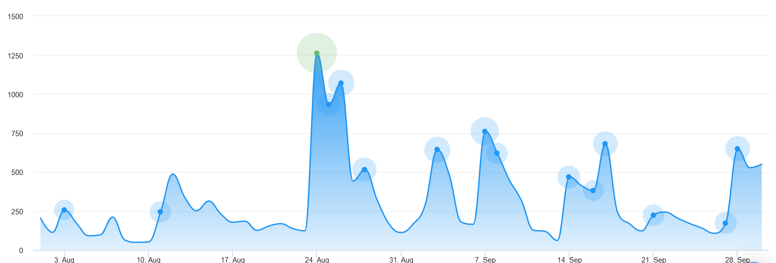 Последний всплеск на графике — 28 сентября 2020 связан с новостью, что российской вакциной от коронавируса начнут прививать добровольцев в Беларуси уже на прошлой неделе.