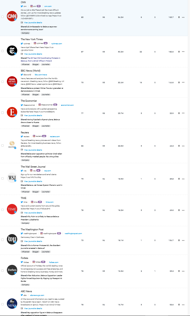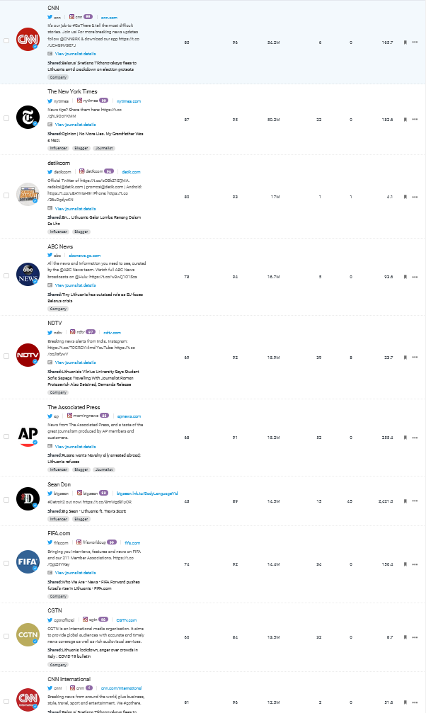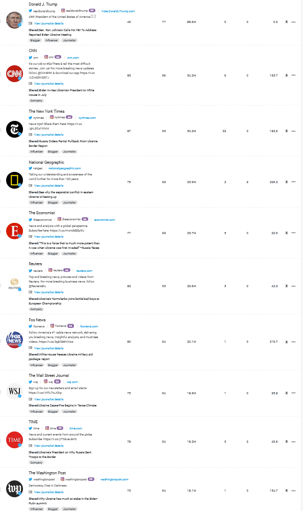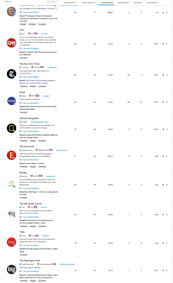 Любопытно, что из авторов твитов о странах было только одно физическое лицо, так называемых, инфлюенсеров, был действующий в тот момент Президент США — Дональд Трамп, который сделал ссылки на публикации с упоминанием Украины и Польши.