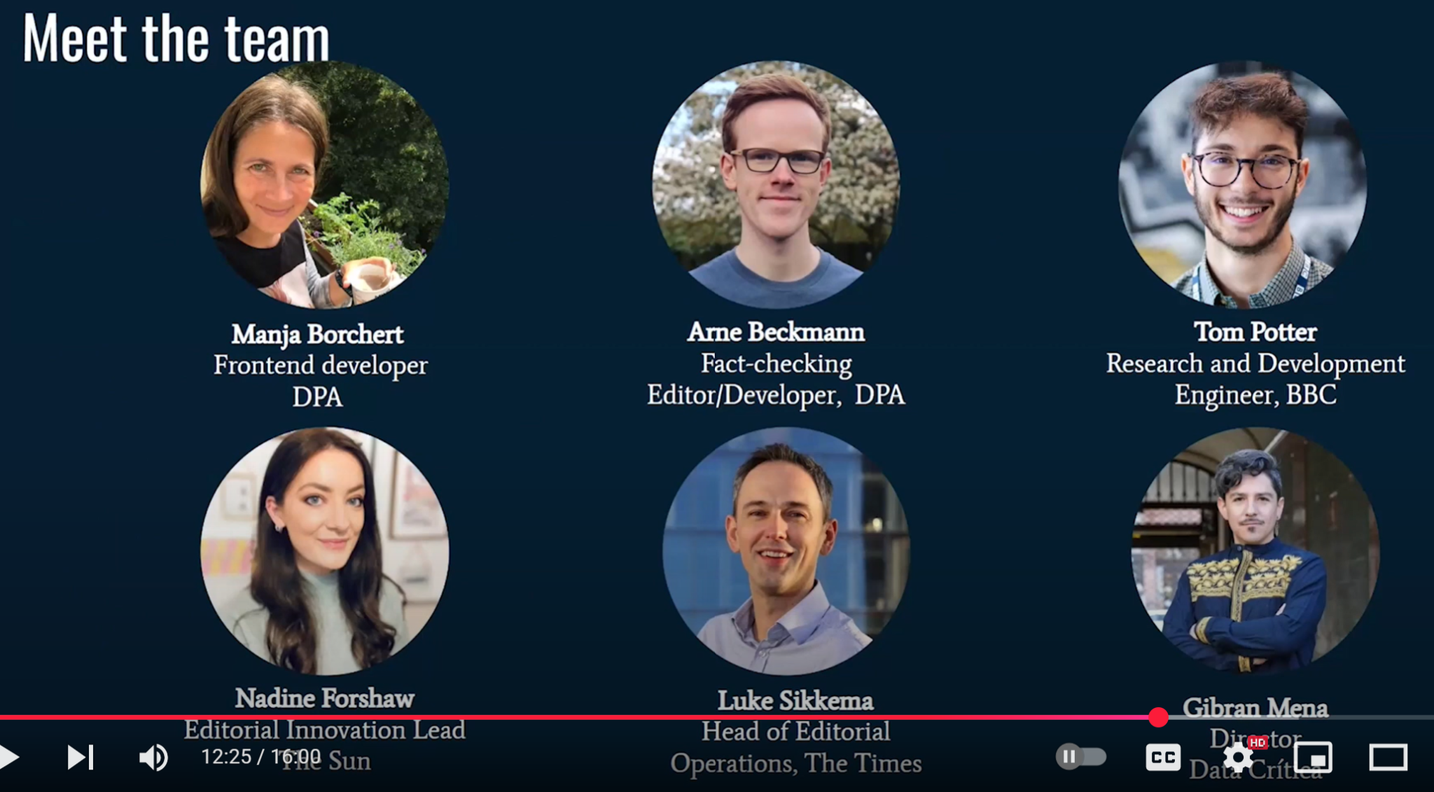 (12:05) Но также и некоторые из тех, которые выходили за рамки этого проекта. (12:08) У DPA и всех редакций есть желание продолжить этот проект и превратить Checkmate из ранней пробы концепции в надежный инструмент для редакций. (12:22) Вот команда, которая собрала Checkmate вместе.