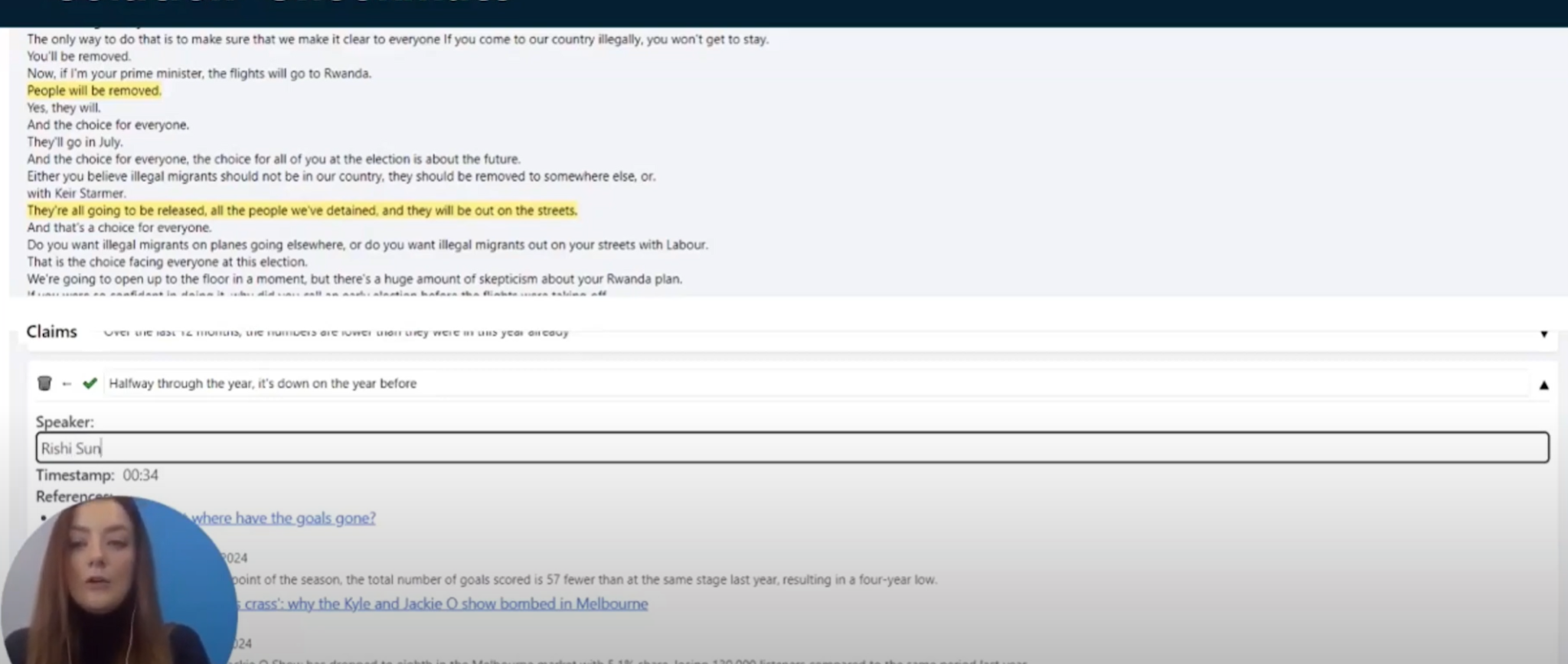 (4:34) Это очень полезно, если вы сотрудничаете с другим журналистом или кем-то еще в вашей компании. (4:40) Итак, я вижу, что это сказал Риши Сунак, и теперь эта претензия будет отнесена к нему, и я нажму на эту маленькую галочку. (4:50) И теперь следующий человек, который придет посмотреть на этот проект, увидит: «ОК, эта претензия была подана Риши Сунаком».