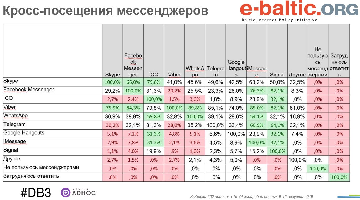 Кросс-посещение мессенджеров беларускай интернет-аудиторией выглядит еще интереснее: