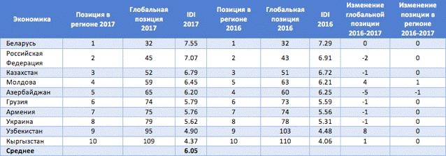 Республика Беларусь, согласно отчету 2017 года, занимает 32-ю позицию и является лидером по развитию ИКТ в регионе СНГ. По сравнению с прошлым годом Республике Беларусь удалось добиться прогресса по суб-индексу доступа к ИКТ (+3 позиции), суб-индексу использования ИКТ (+2 позиции), а также сохранить позиции в числе мировых лидеров по уровню развития человеческого потенциала (5 место). В отчете отмечается, что благодаря продуманной и поступательной политике в Республике Беларусь создана развитая инфраструктура, позволяющая оказывать населению качественные и доступные услуги фиксированного и мобильного ШПД.