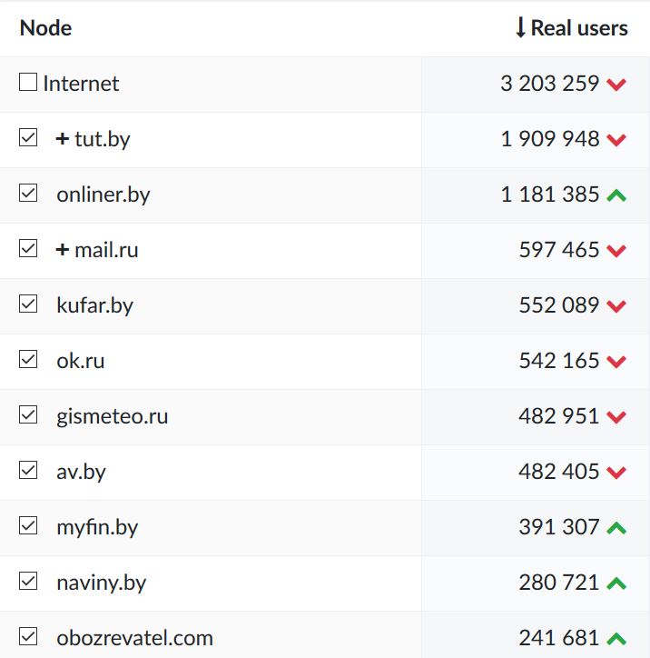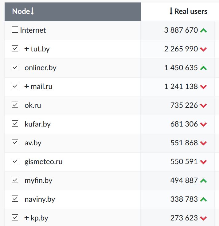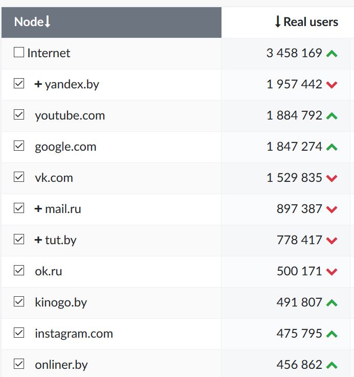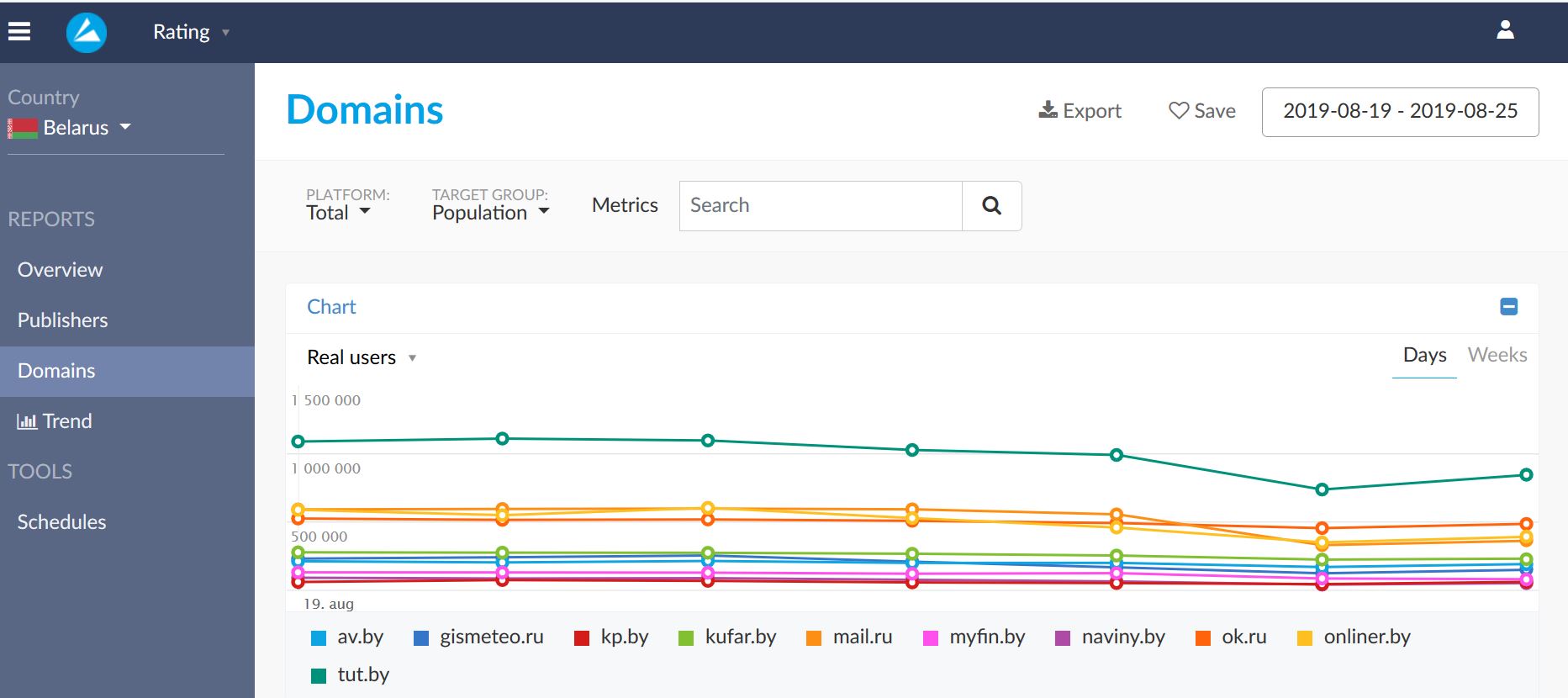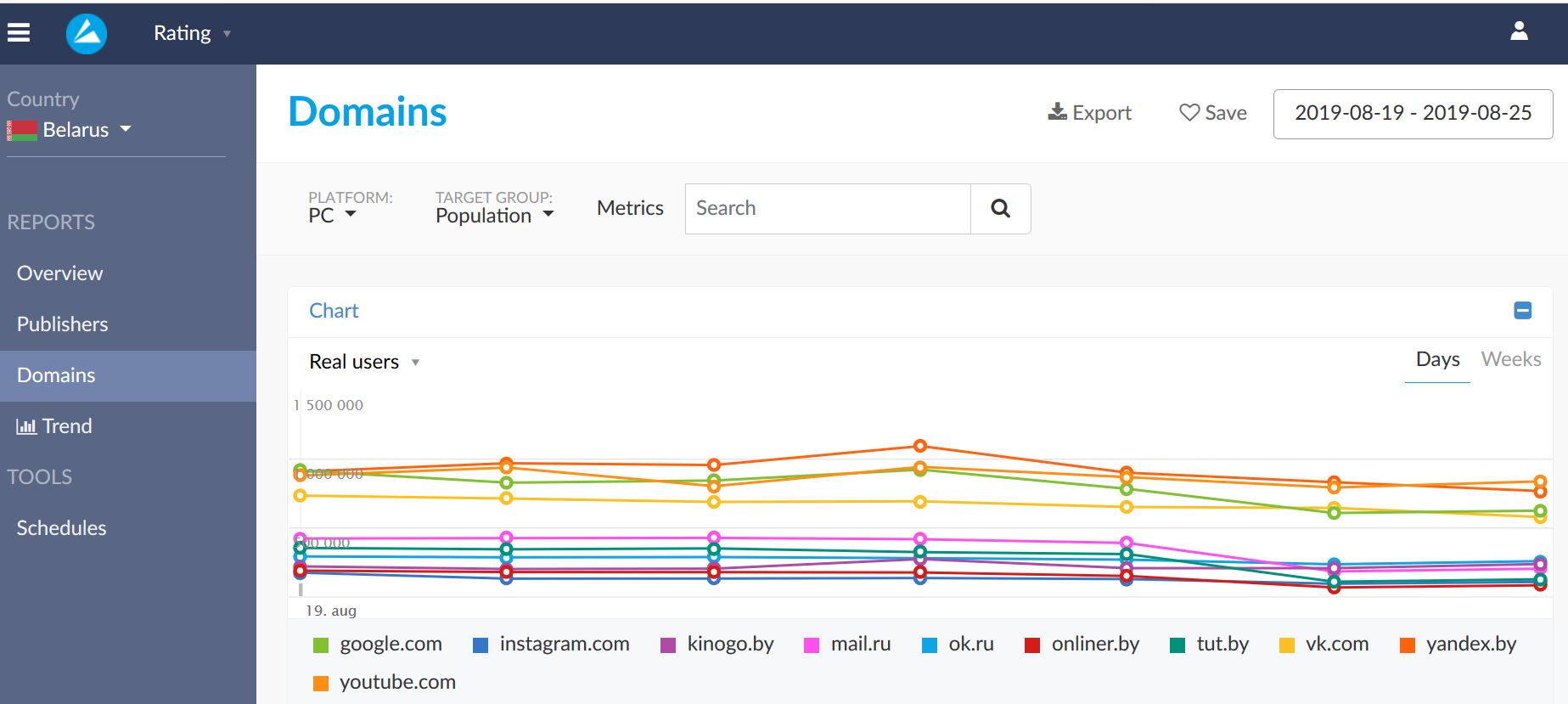 Еженедельный рейтинг популярных сайтов у беларускай интернет-аудитории, 19-25 августа 2019