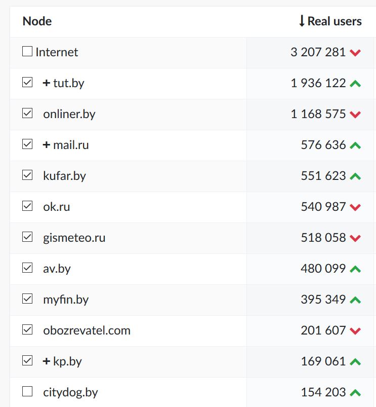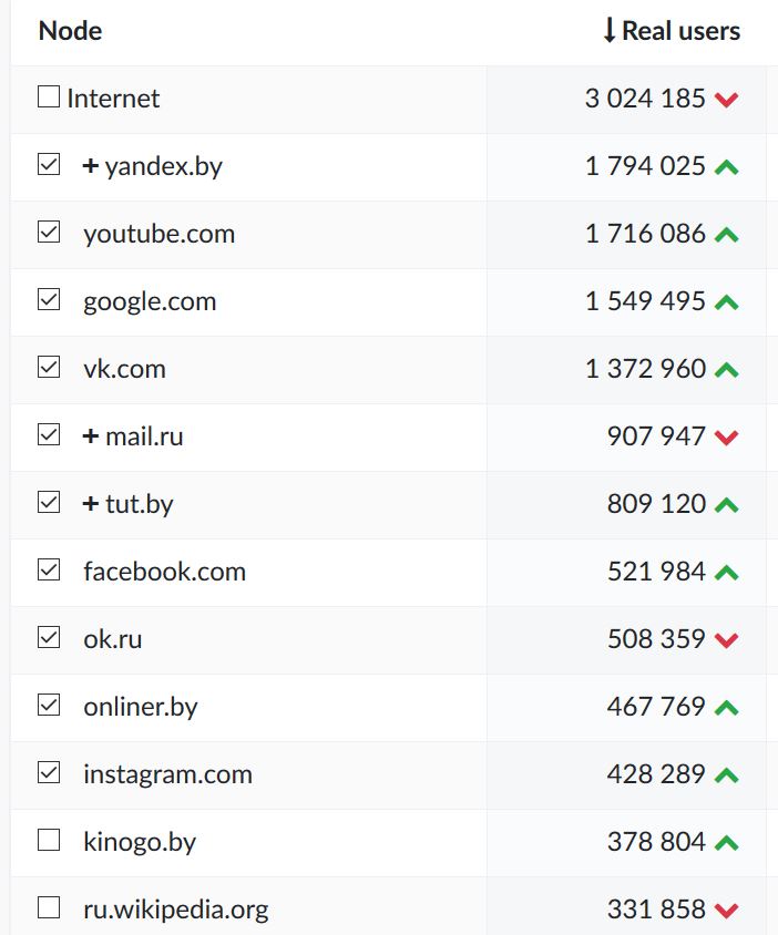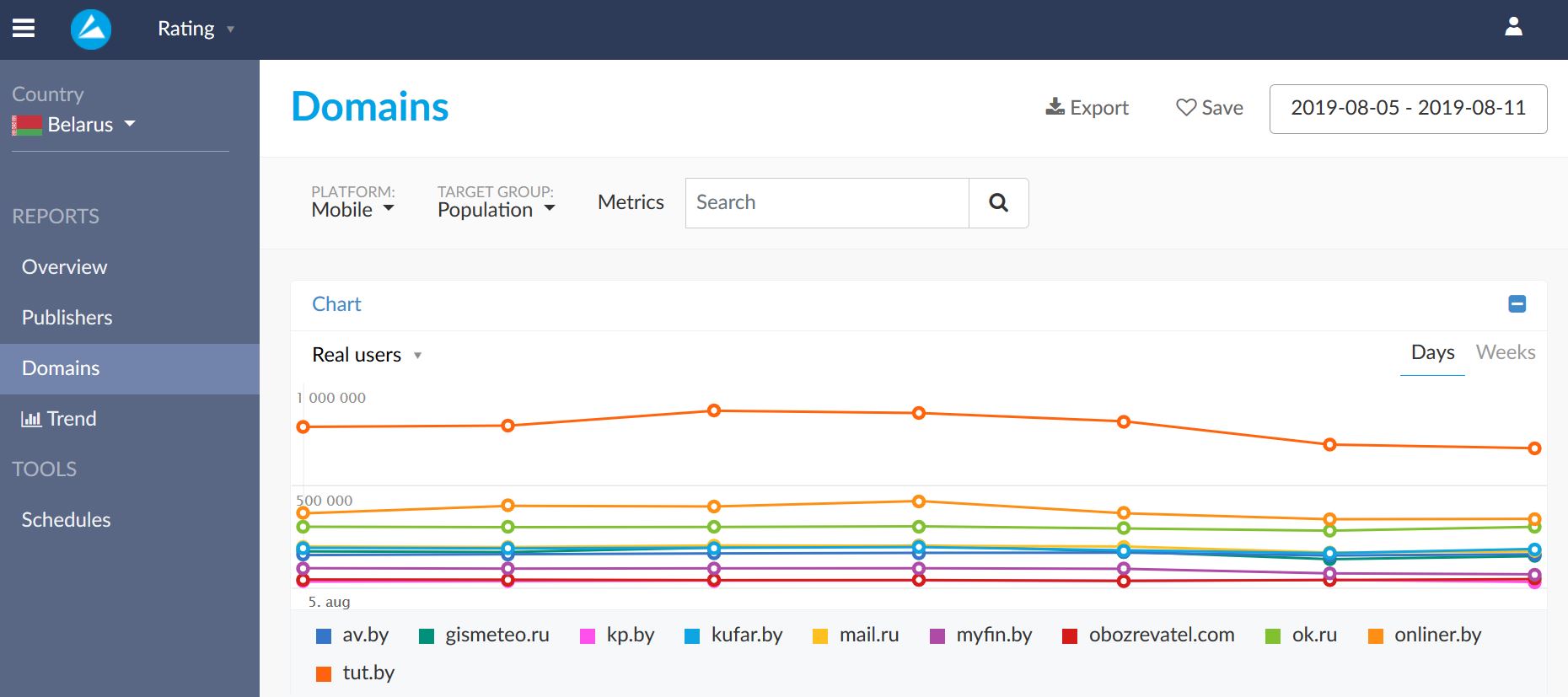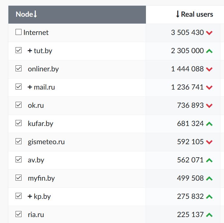 Топ10 аудируемых сайтов по числу беларуских посетителей беларускай в 5-11 августа 2019 года (32 неделя):