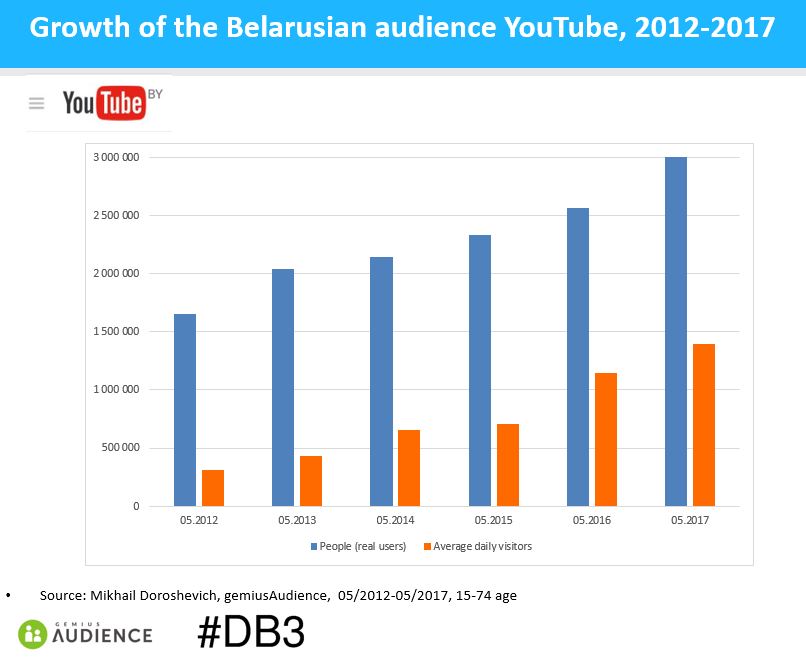 График дня: Аудитория Youtube в Беларуси, 2012-2017