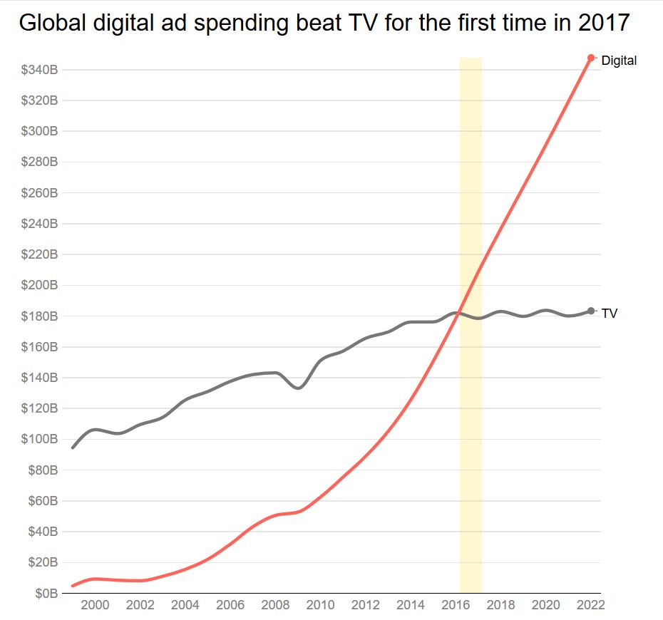 Home » Реклама График дня: Как интернет-реклама обогнала телевизионную в 2017 Author infopolicy Reading 1 min Views 437 Published by 15.01.2018 На основании данных агентства Magna Источник: https://www-recode-net.cdn.ampproject.org/c/s/www.recode.net/platform/amp/2017/12/4/16733460/2017-digital-ad-spend-advertising-beat-tv Похожее