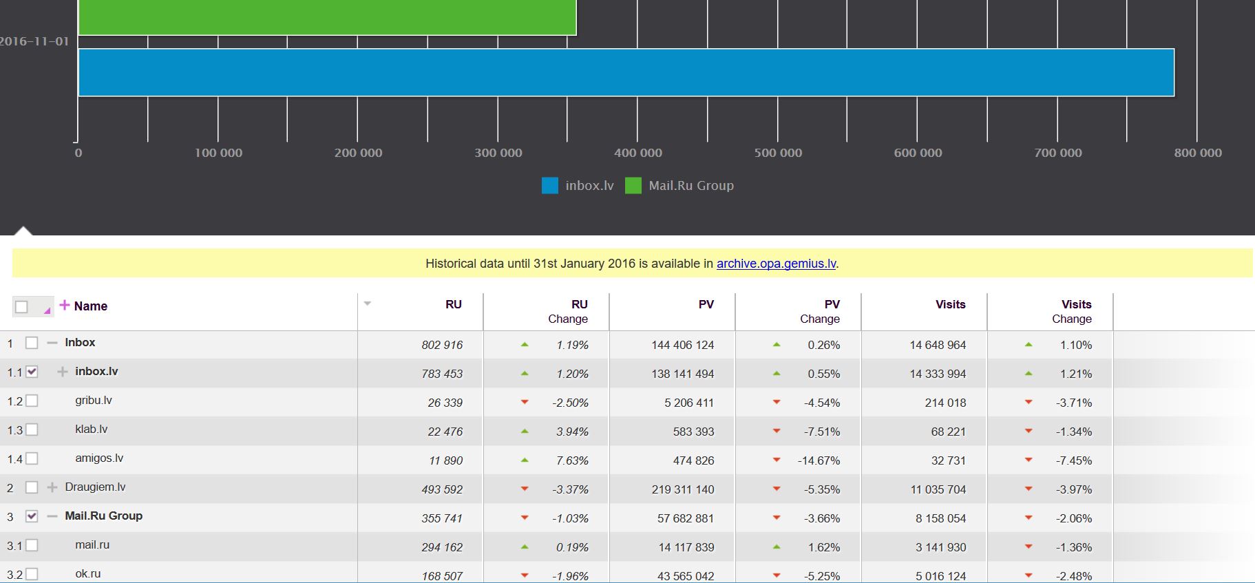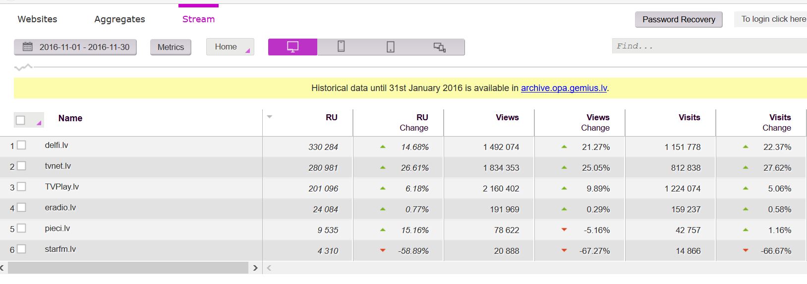 В ноябре 2016 исследовательская компания Gemius представила в Латвии сервис для оценки числа людей, посетивших веб-сайт – http://opa.gemius.lv/ или OPA (Online Publishers Audit).