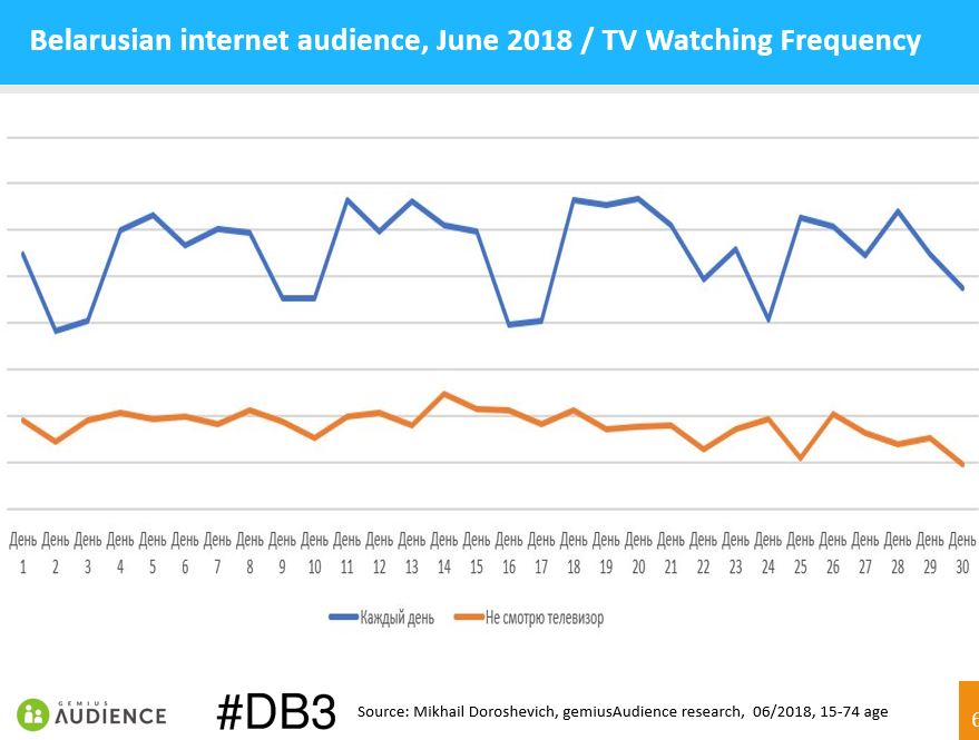 Среди социально-демографических характеристик аудиторного медиаисследования беларускага интернета есть частота смотрения ТВ.