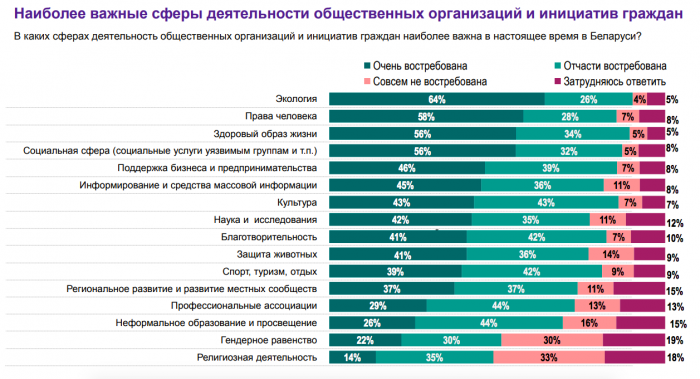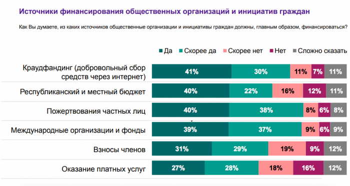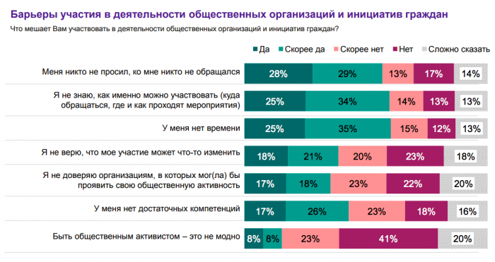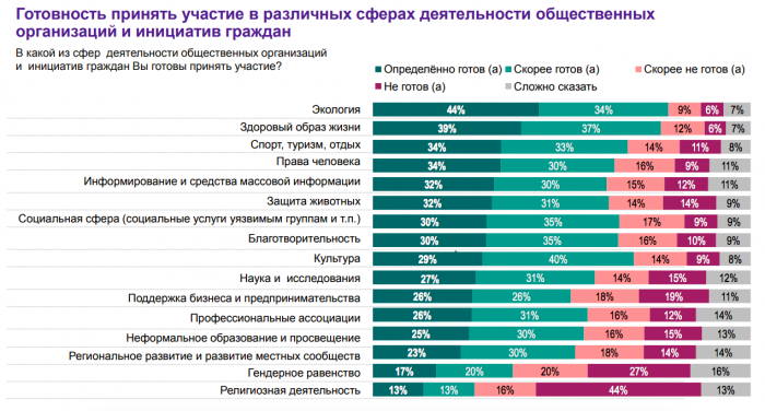 – То же самое касается опросов в отношении общественных организаций и инициатив граждан. Нам было интересно понять, как люди относятся к общественной деятельности, что они считают важным, в чем готовы принимать участие.