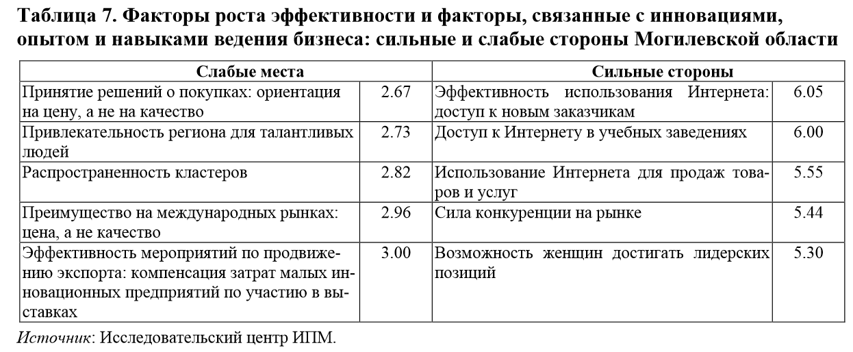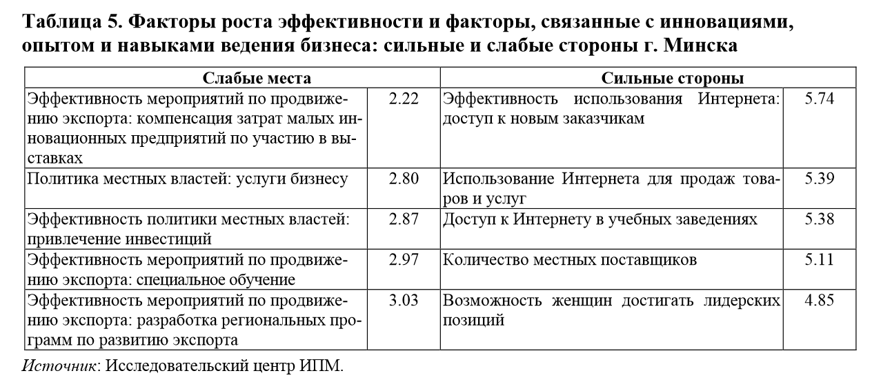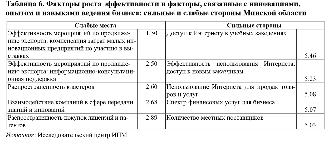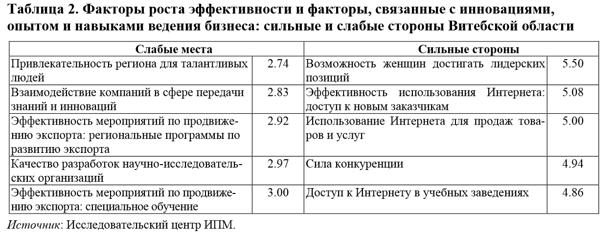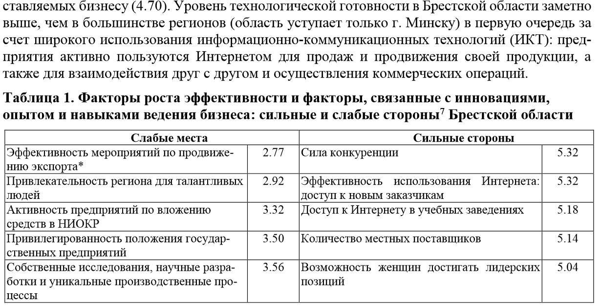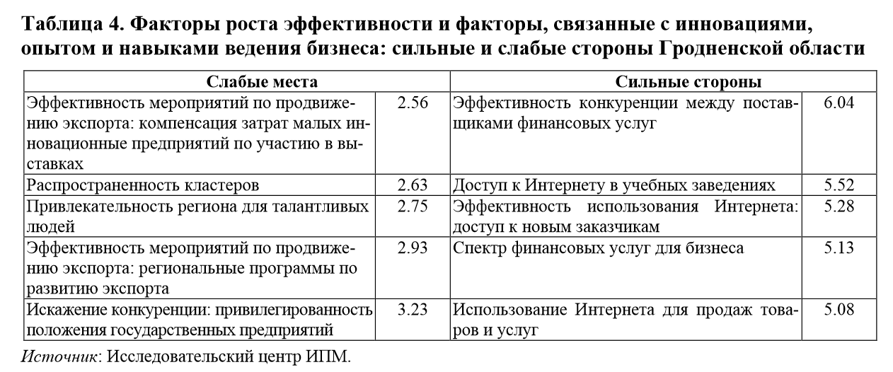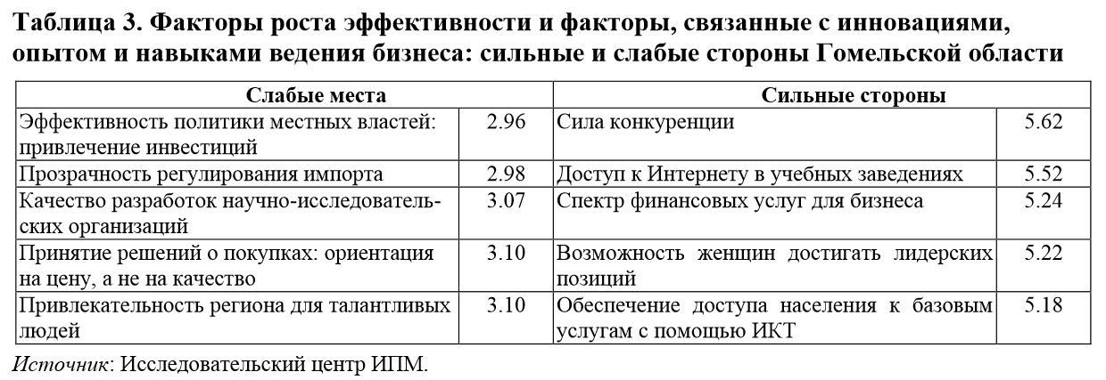 Конкурентоспособность регионов Беларуси: факторы роста эффективности, инновации, опыт и навыки ведения бизнеса