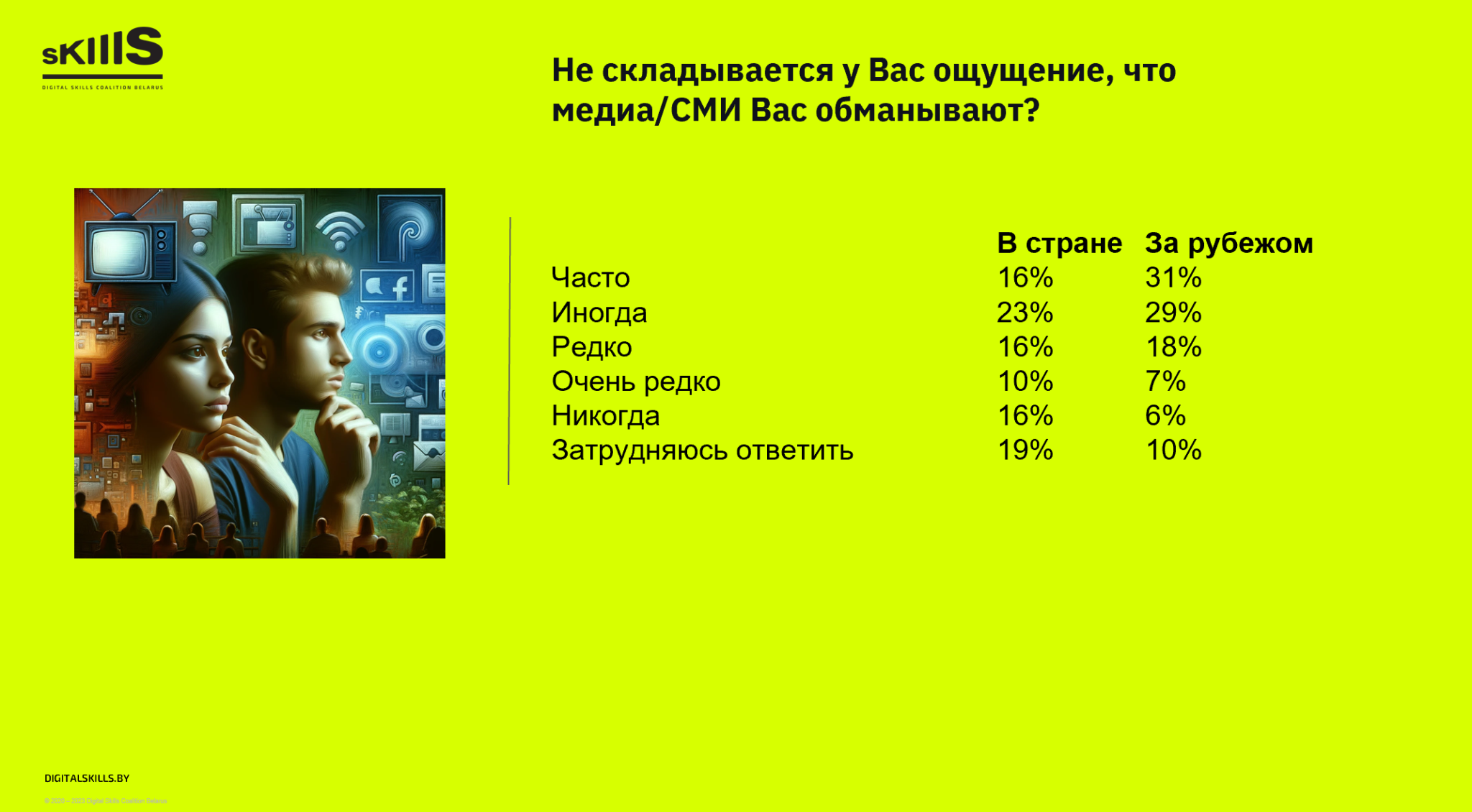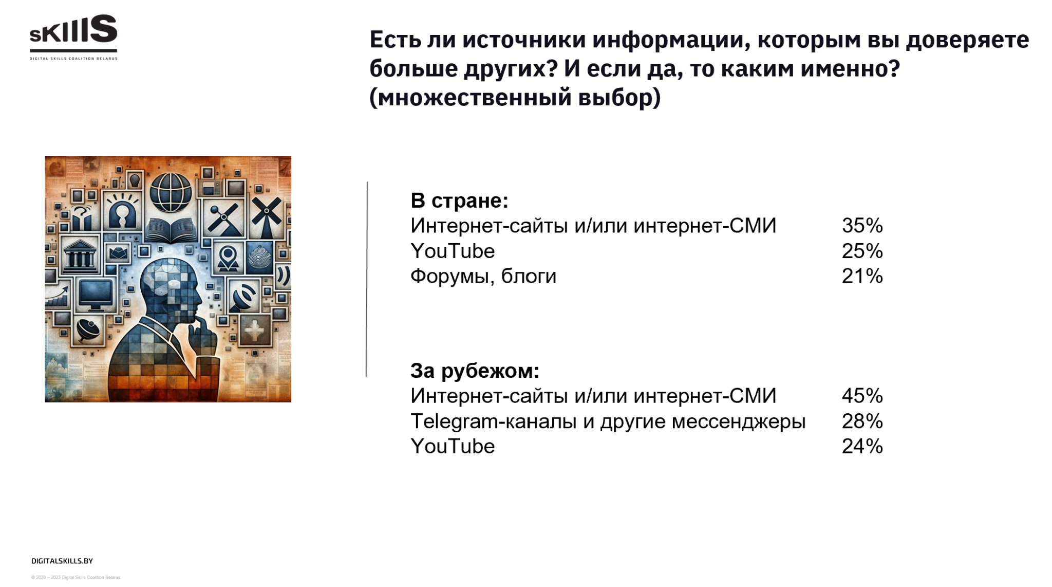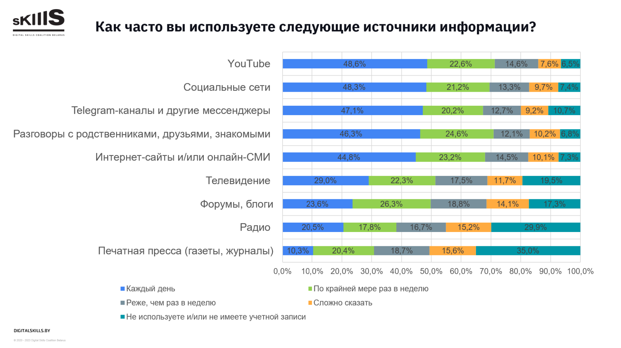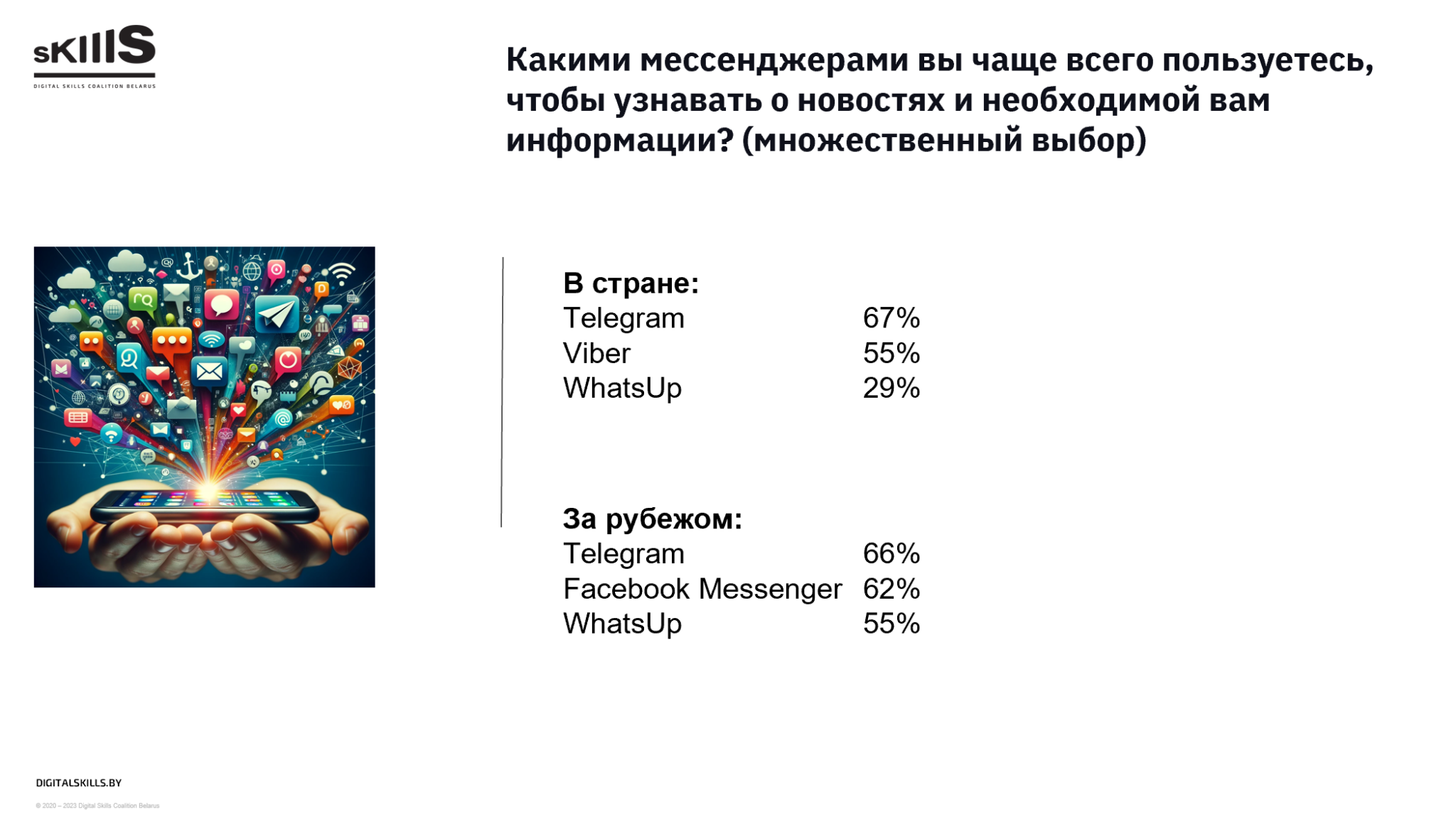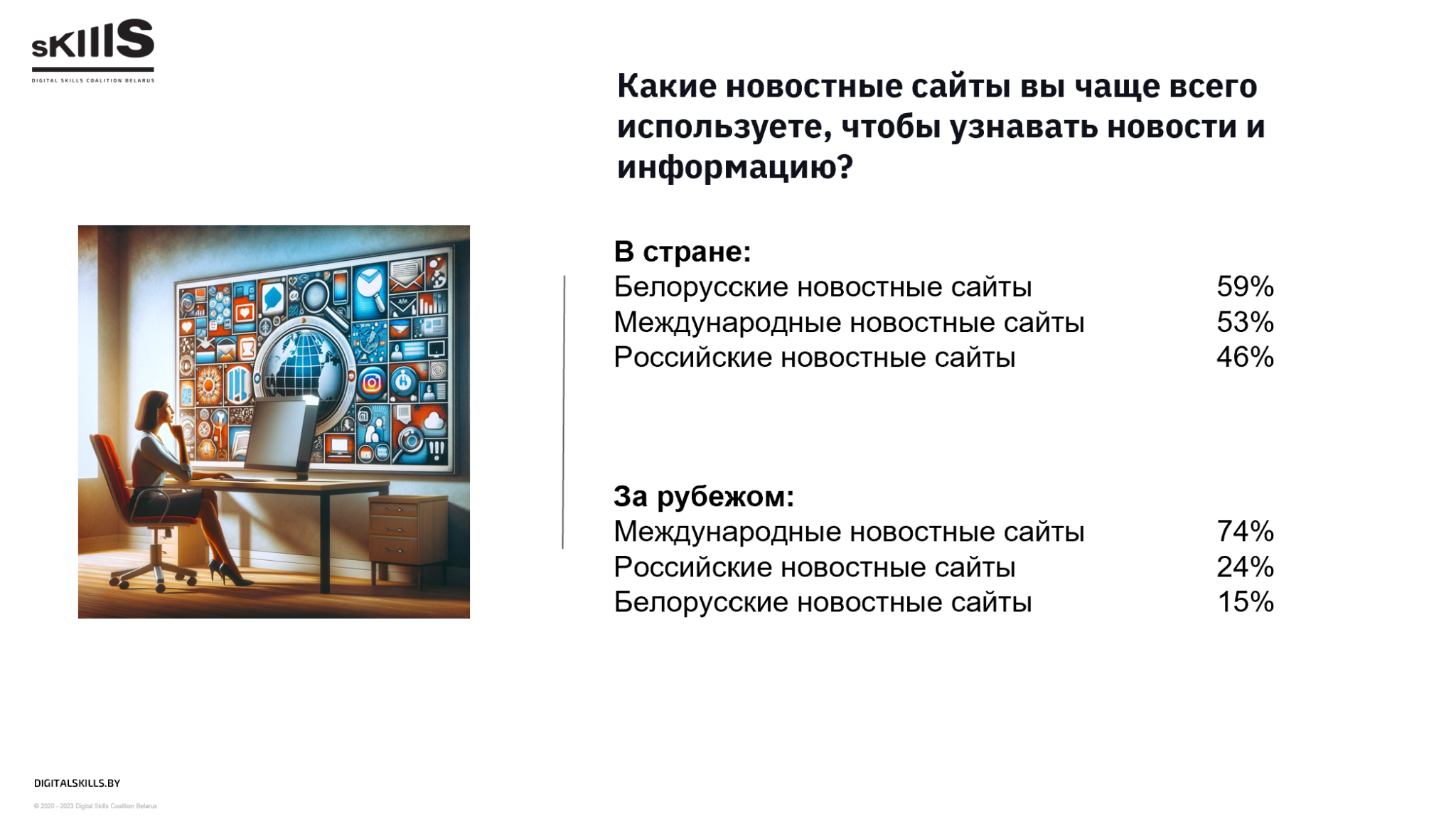 Краткие результаты исследования медиапотребления беларуской интернет-аудитории в стране и за рубежом, проведенного в сентябре-октябре 2023 года, по инициативе Коалииции по цифровым навыкам и Беларуской национальной платформой.