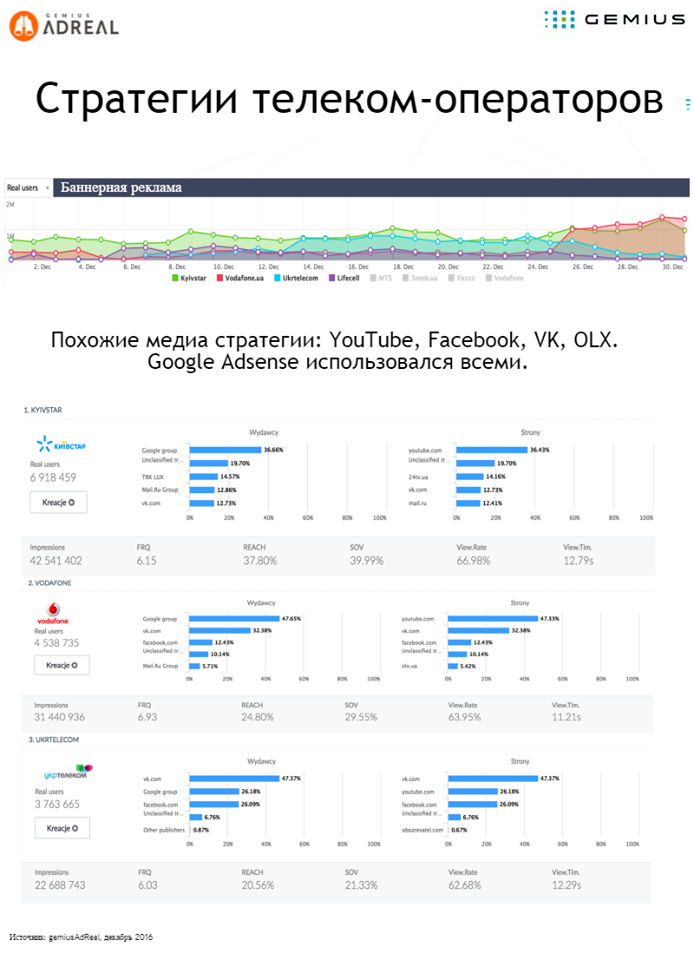 Интересно, что все компании использовали в своих стратегиях Adsense. Результаты исследования стратегий основаны на данных мониторинга онлайн видеорекламы gemiusAdReal.