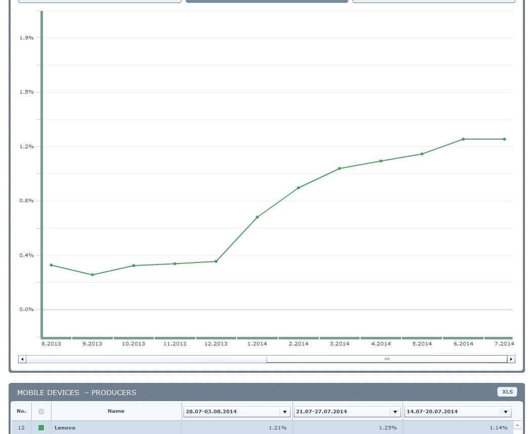Среди производителей по генерируемому мобильному трафику Lenovo: