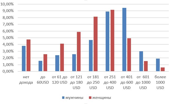 Теперь рассмотрим разницу в доходах беларуских интернет-пользователей по гендерному признаку: