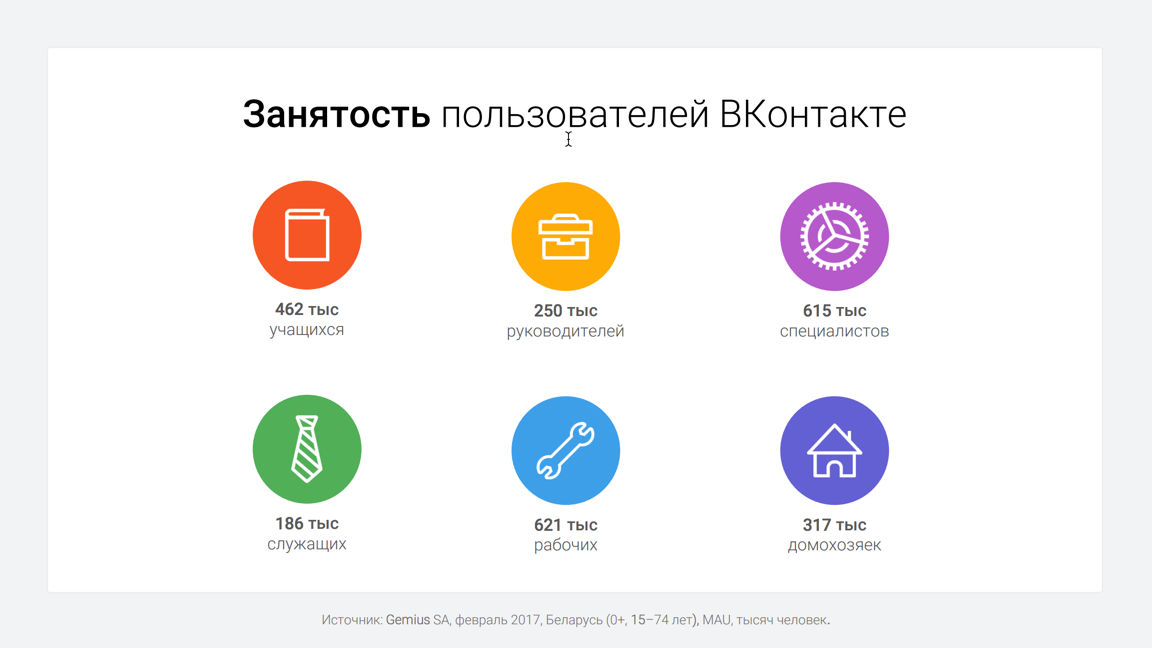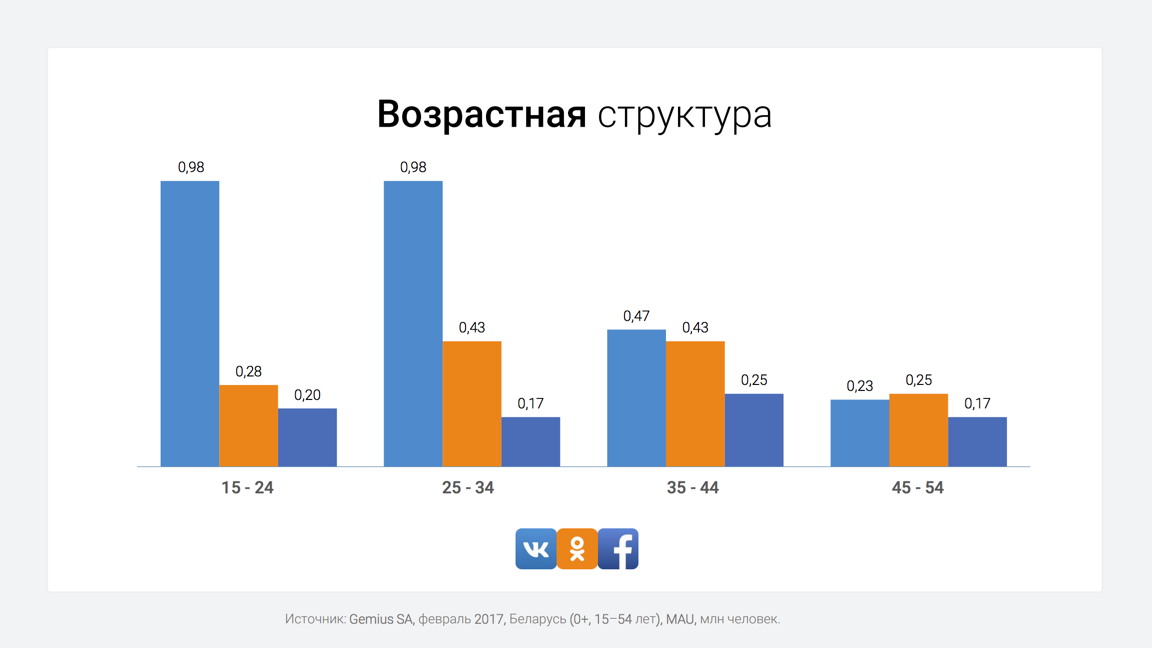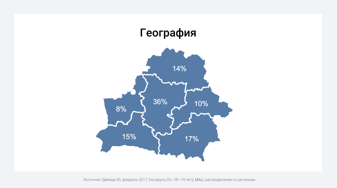 Прекрасный пример какие наглядные слайды может подготовить клиент, в данном случае Mail.ru Group (MRG), на основании данных регулярного медиаисследования gemiusAudience. Данное исследование в Беларуси проводится по инициативе исследовательской компании #DB3.