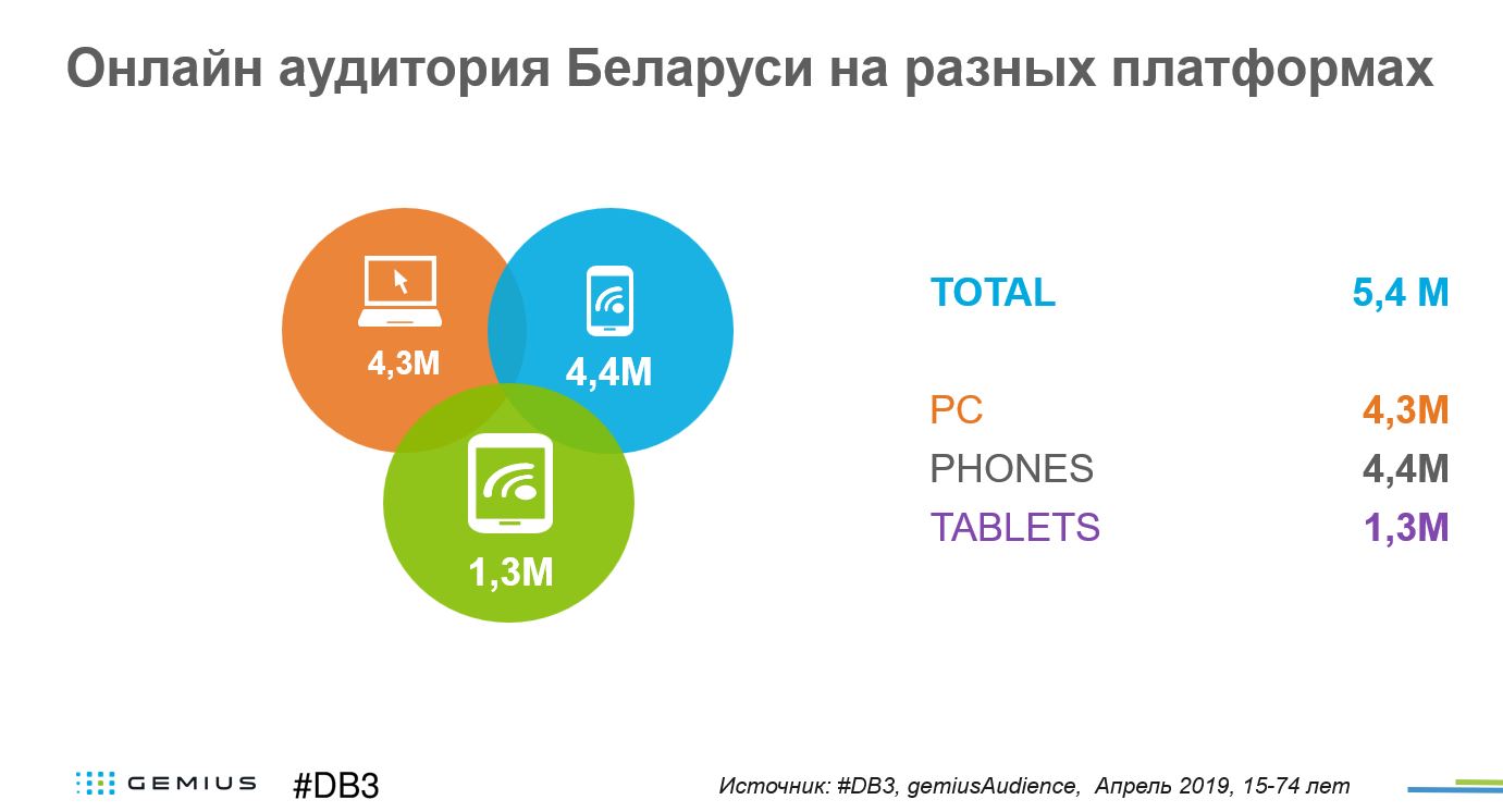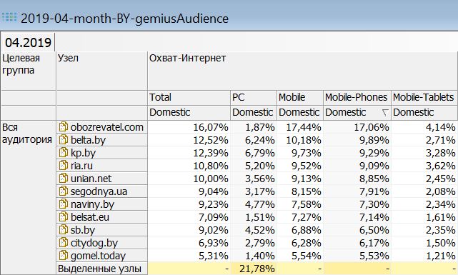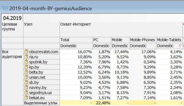В заключении публикации данные об общей беларускай интернет-аудитории в апреле 2019: