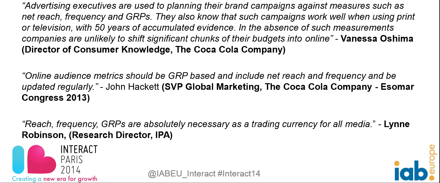 Отчет двух исследований, проведенных IAB Europe и представленных на конференции Interact в мае 2014 в Париже.