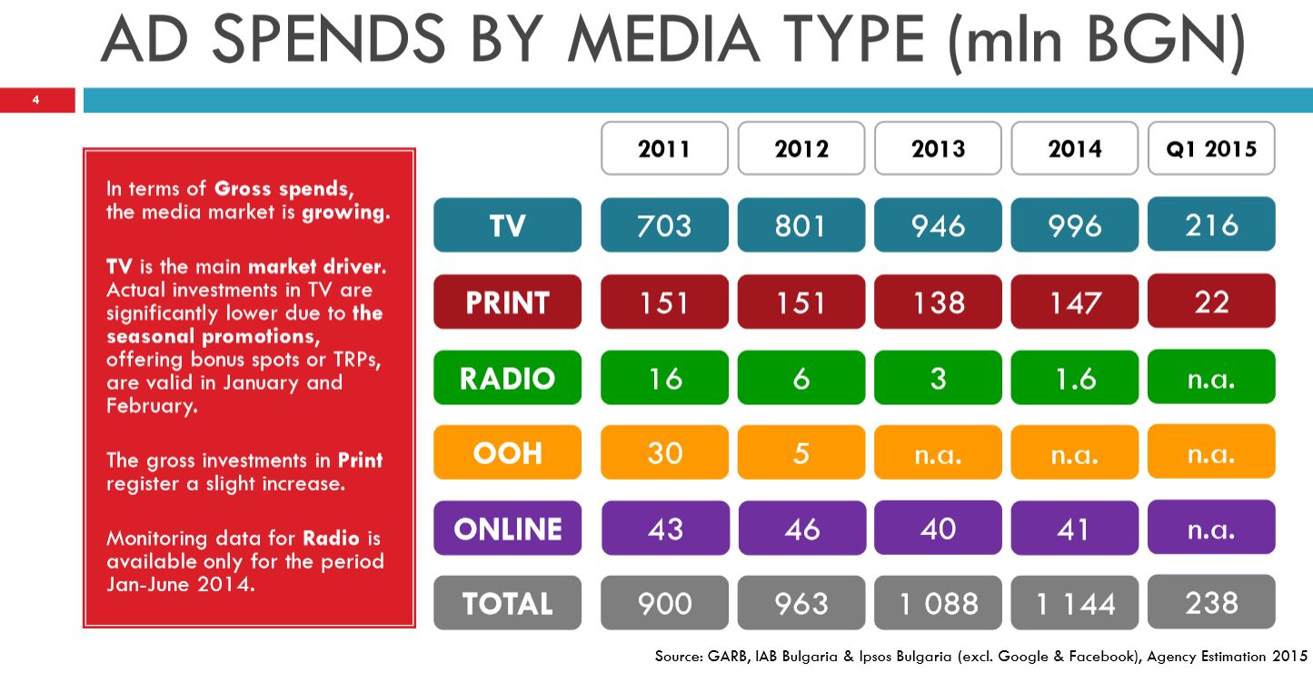 Один из слайдов публикации Media Landscape Q1 2015. К изучению рекомендуется три слайда про медиа-группы в Болгарии.