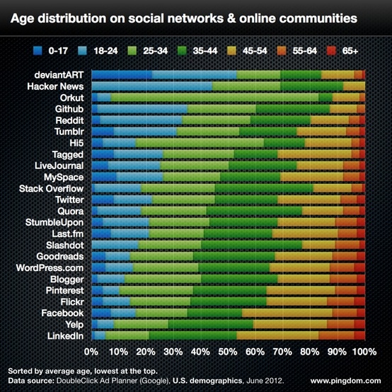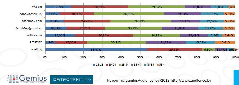 Home » Без рубрики Распределение по возрасту в социальных сетях: США vs. Беларусь Author infopolicy Reading 1 min Views 404 Published by 01.09.2012 В США: В Беларуси: Источник: Gemius, исследование gemiusAudience, июль 2012 Источник: http://pinterest.com/pin/68328119317427149/ Похожее