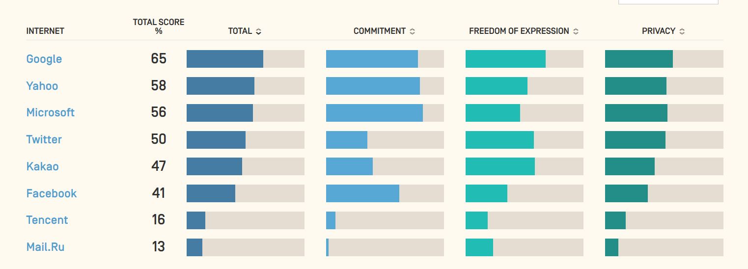 Home » Policy Рейтинг цифровых прав 2015 Author infopolicy Reading 1 min Views 335 Published by 18.11.2015 Стоит обратить внимание, что в 16 самых крупных итернет- и телекоммуникационных компаний входит Mail.ru Group/ Источник: https://rankingdigitalrights.org/index2015/ Похожее
