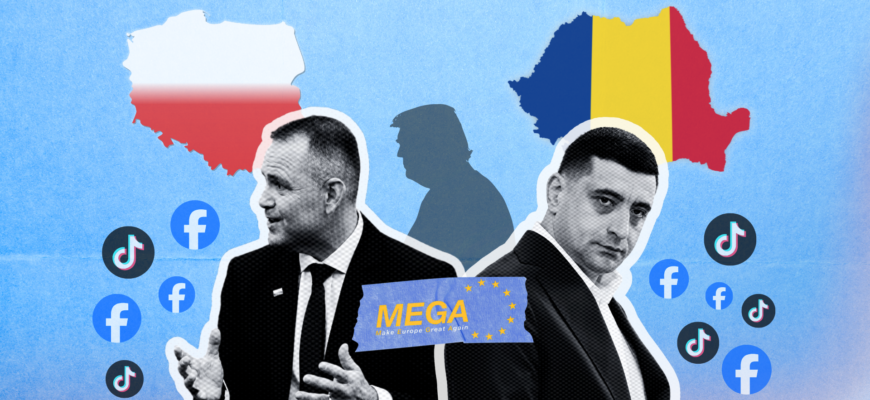 Совместно с румынским центром журналистских расследований Context.ro мы проанализировали документы из открытых источников, контент социальных сетей и взяли интервью у политиков и экспертов. Мы заглянули за кулисы движения MEGA, центром которого являются Бухарест и Варшава, а лидерами — Симион и Навроцкий.