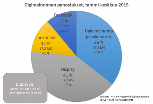 По данным исследования IAB Финляндия рынок интернет-рекламы вырос на 9,2% относительно первого полугодия 2014 года.