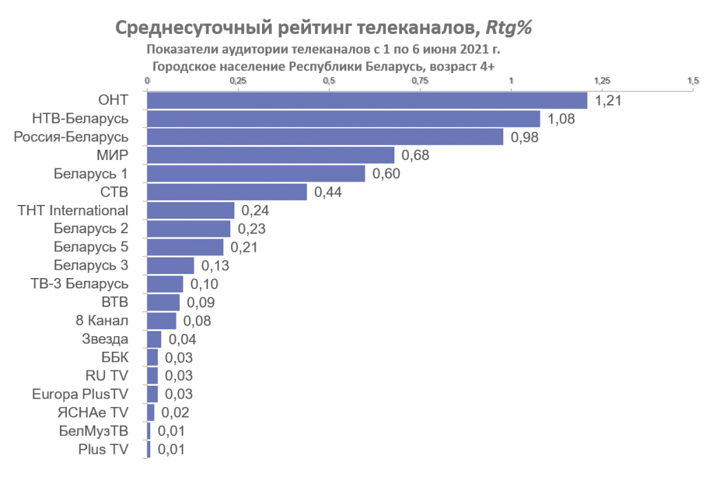 И.Н.: – И будет ли коммерческая целесообразность в этом. Городского населения в возрасте 4+ у нас в Беларуси порядка 7 млн человек. Но это не все телесмотрение в стране, скорее, чуть больше, чем верхушка айсберга. Пока мы не замеряем телесмотрение сельского населения, нет замера просмотра ТВ вне домашнего просмотра: а во время пандемии люди выезжают на дачи, работая удаленно.