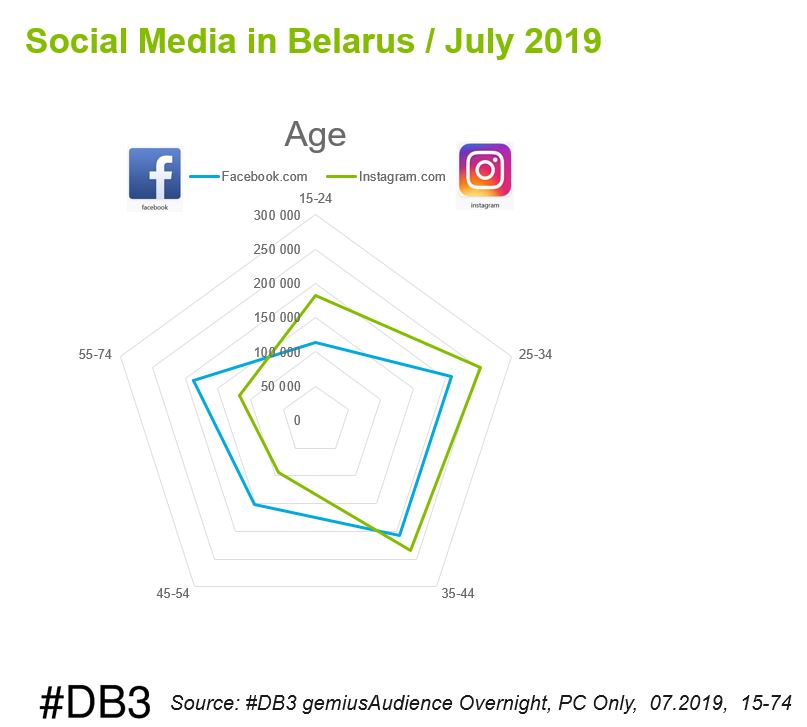 Общая (с учетом пересечений) компьютерная онлайн аудитория этих двух социальных сетей – 1,3 миллиона человека в возрасте 15-74 года. 460 000 человек – посетили обе в июле 2019