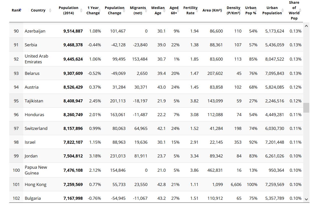 Если посмотреть на общую таблицу населения стран, то Беларусь находится в интересном соседстве: