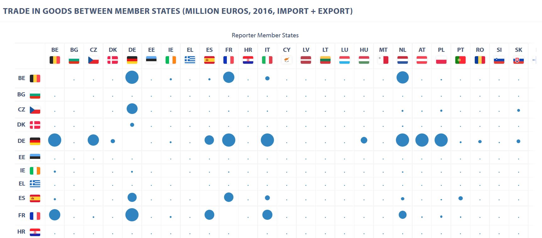 Потрясающая таблица, которая показывающая товарооборот стран Европейского союза.