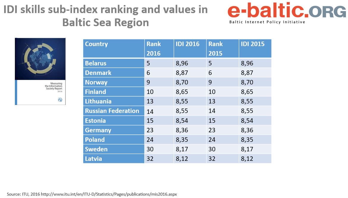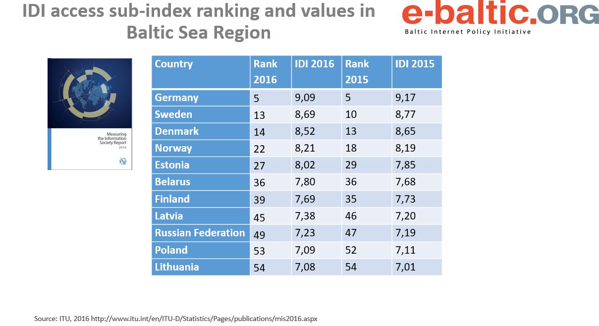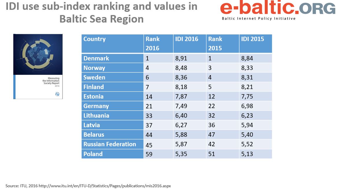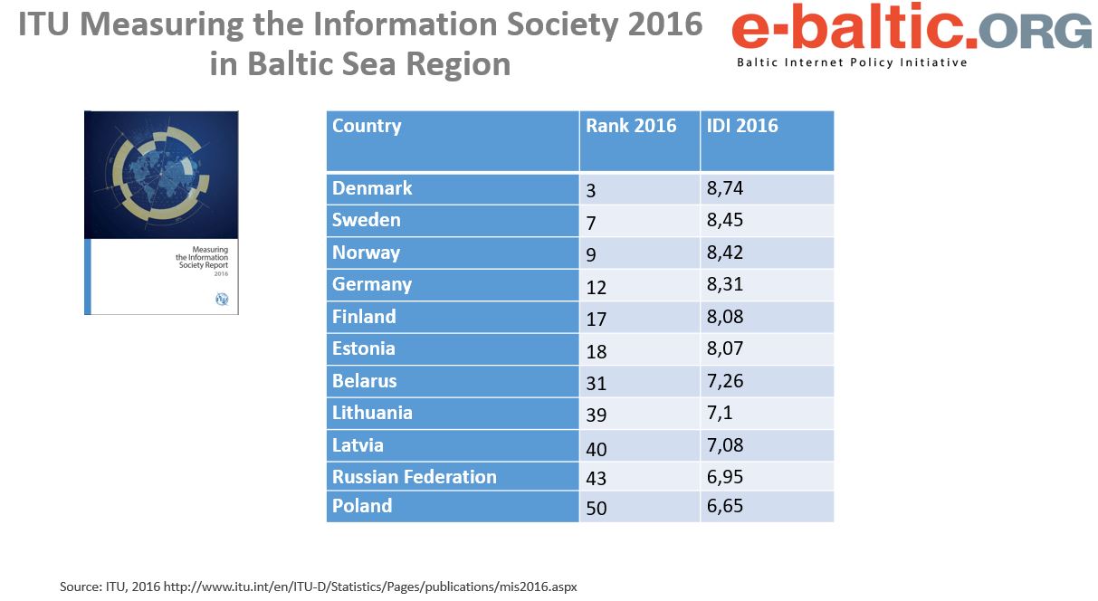 Все страны, относящиеся к региону Балтийского моря, по данным отчета МСЭ (ITU) являются глобальными лидерами по уровню развитию информационно-коммуникационных технологий по всем параметрам индекса.