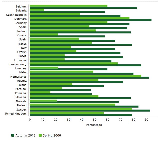 Источник данных: Eurobarometer, исследование проведенное для Европейской Комиссии -TNS.