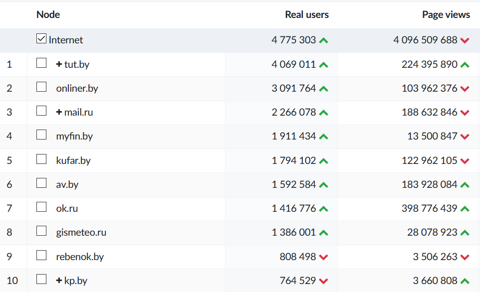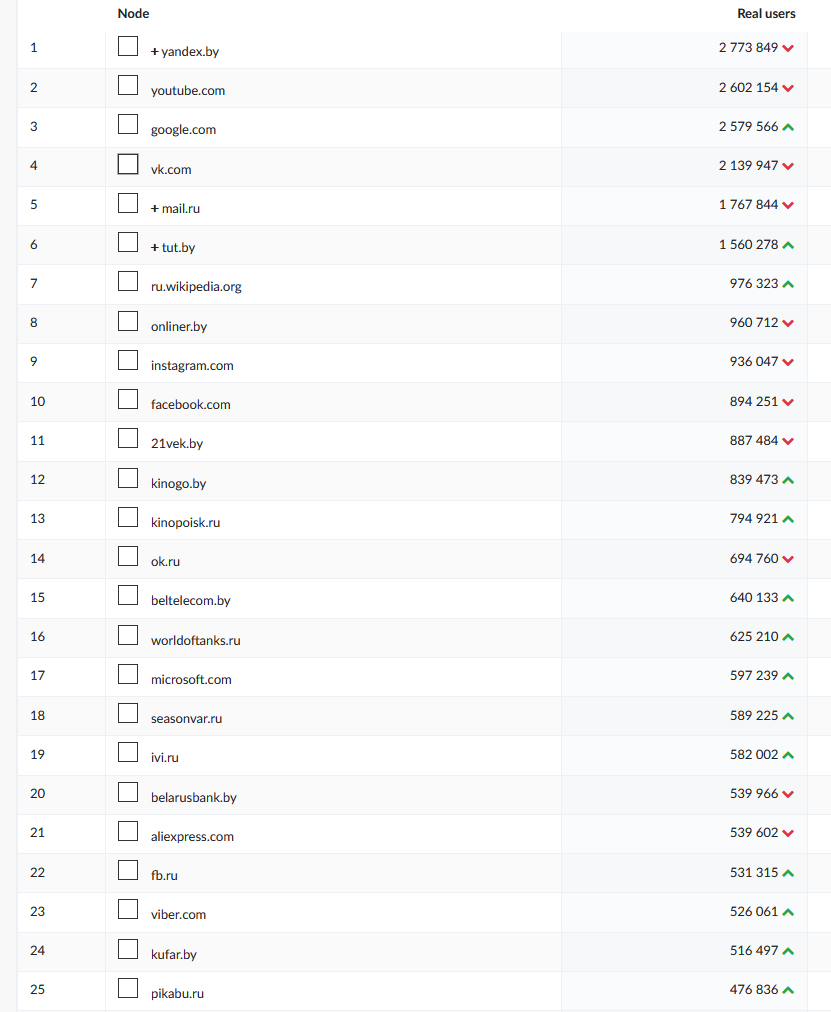 В данном рейтинге за январь 2021 по результатам медиадисследования вебсайты ранжированы по размеру компьютерной (десктопной) беларуской интернет-аудитории в возрасте 15-74 года.