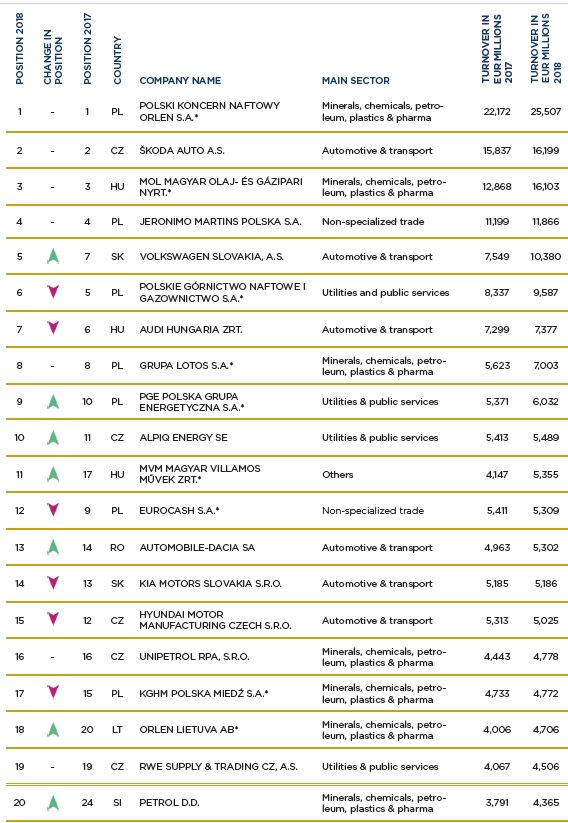 Топ 20 компаний по обороту в 2018 в CEE регионе:
