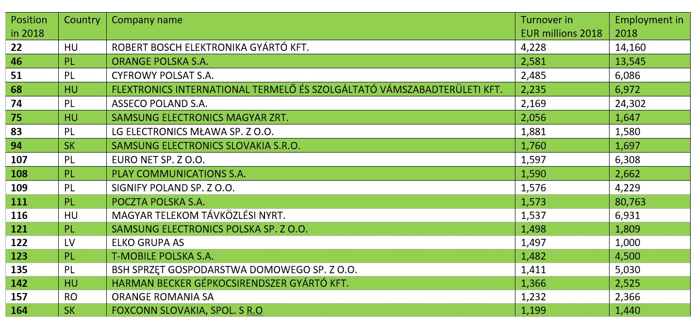 Как видно из рейтинга крупнейшие компании в регионе Центральной и Восточной Европы – это компании традиционных индустрий. Влияние четвертой промышленной революции несколько преувеличено.