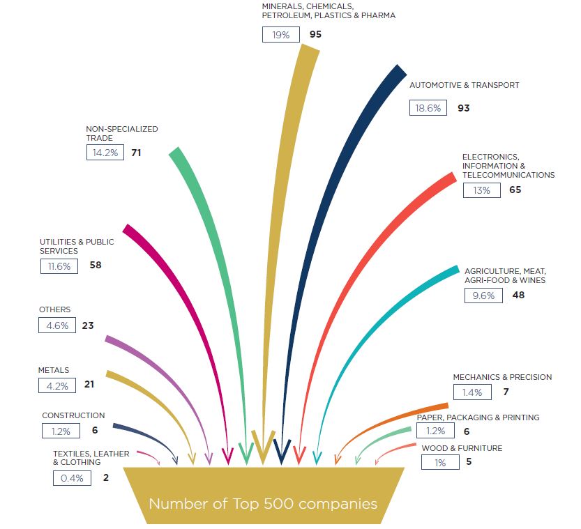 Общий оборот 500 компаний в 2018 году составил – 698 миллиардов евро, что больше на 9,6%, чем в 2017 году. Исследование охватывало все компании в этих странах с годовым оборотом свыше 300 миллионов EUR, исключая банки, страховые компании и лизинговые. Порог входа в 500 крупнейших компаний составил – 479 миллионов евро.