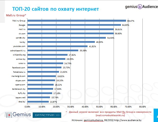 TOP20 сайтов в Беларуси, июнь 2012