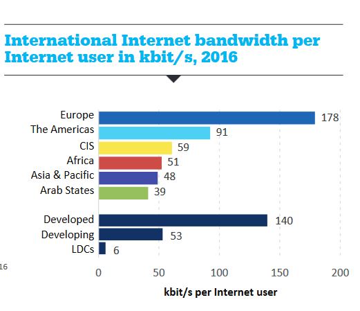 Международная полоса пропускания (bandwidth) в разных регионах: