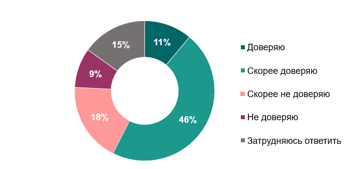 В отношении доверия к деятельности общественных организаций и инициатив четкая позиция сформирована у пятой части респондентов (11% доверяют, 9% не доверяют). Респондентов с такой четкой позицией больше в возрастной группе 15–24 лет. Деятельности общественных организаций и инициатив граждан больше всего доверяют учащиеся и респонденты, находящиеся на пенсии по возрасту, живущие в городах, а также те, кто работает не более 40 часов в неделю. Самый низкий уровень доверия — среди неработающих респондентов, которые ищут работу.