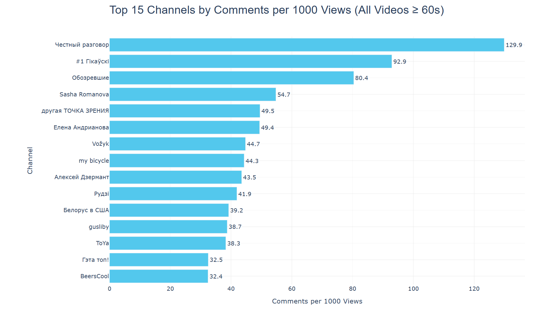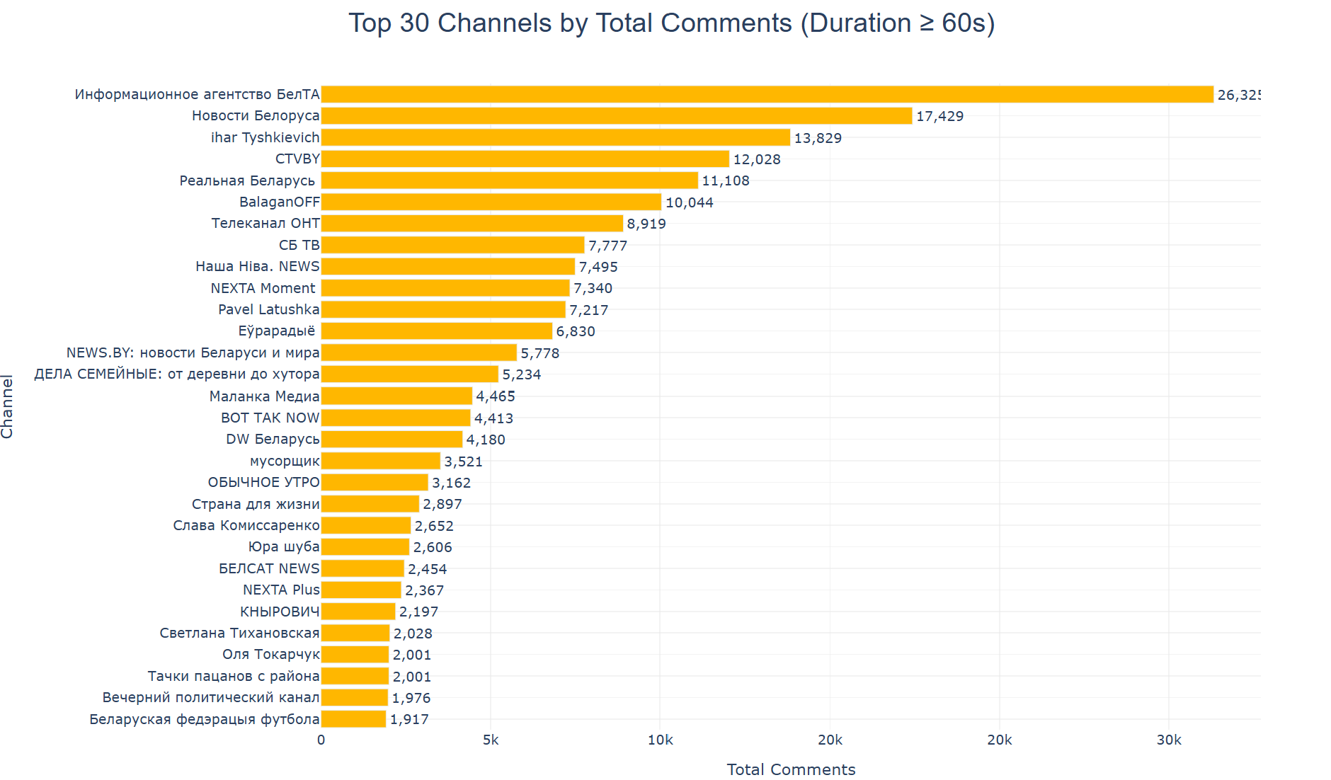 Топ30 каналов по вышеперечисленным критериям с наибольшим числом комментариев: