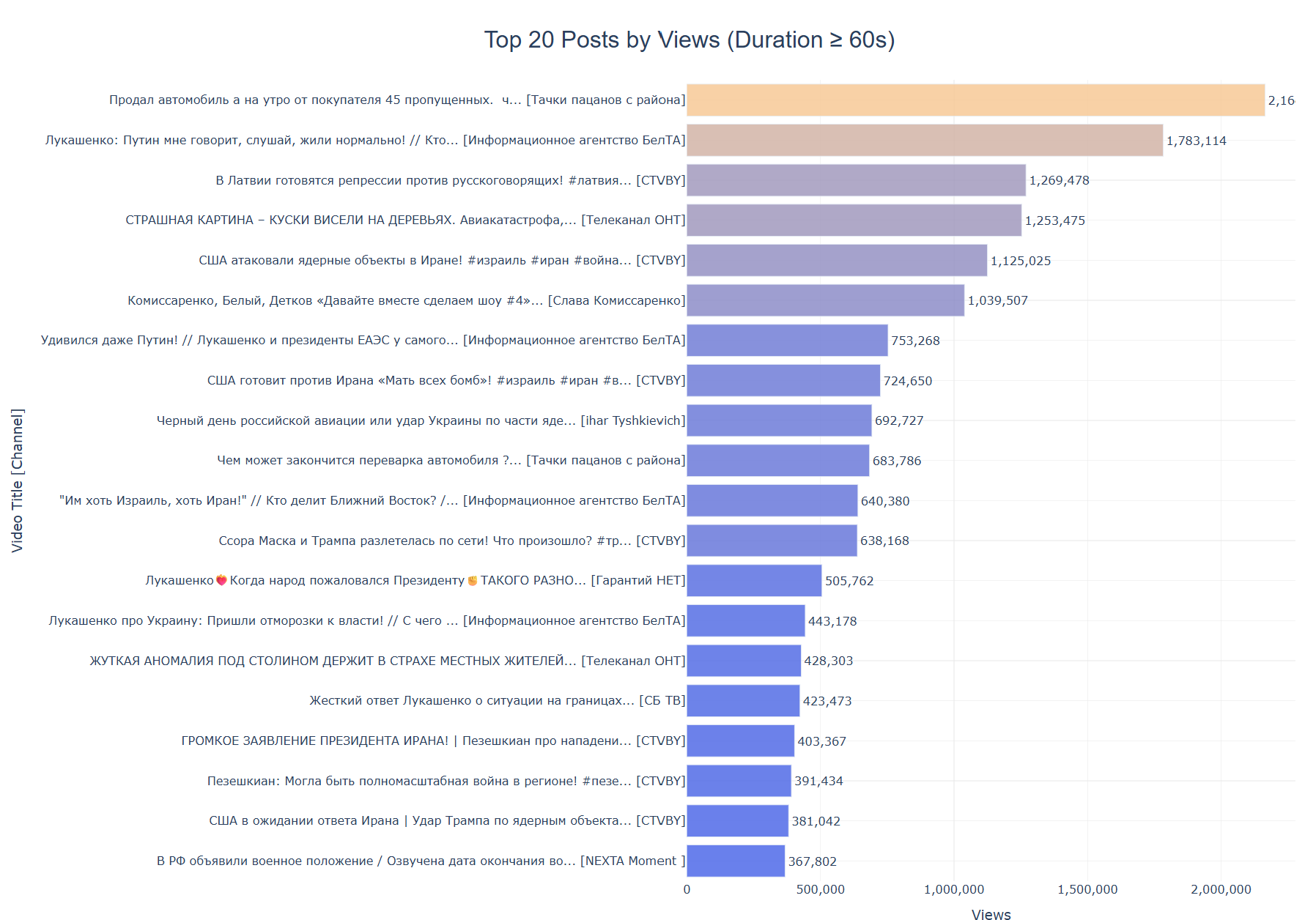 Можно видеть, что большая часть видео возможно имеет не беларускую аудиторию исходя из их заголовков.