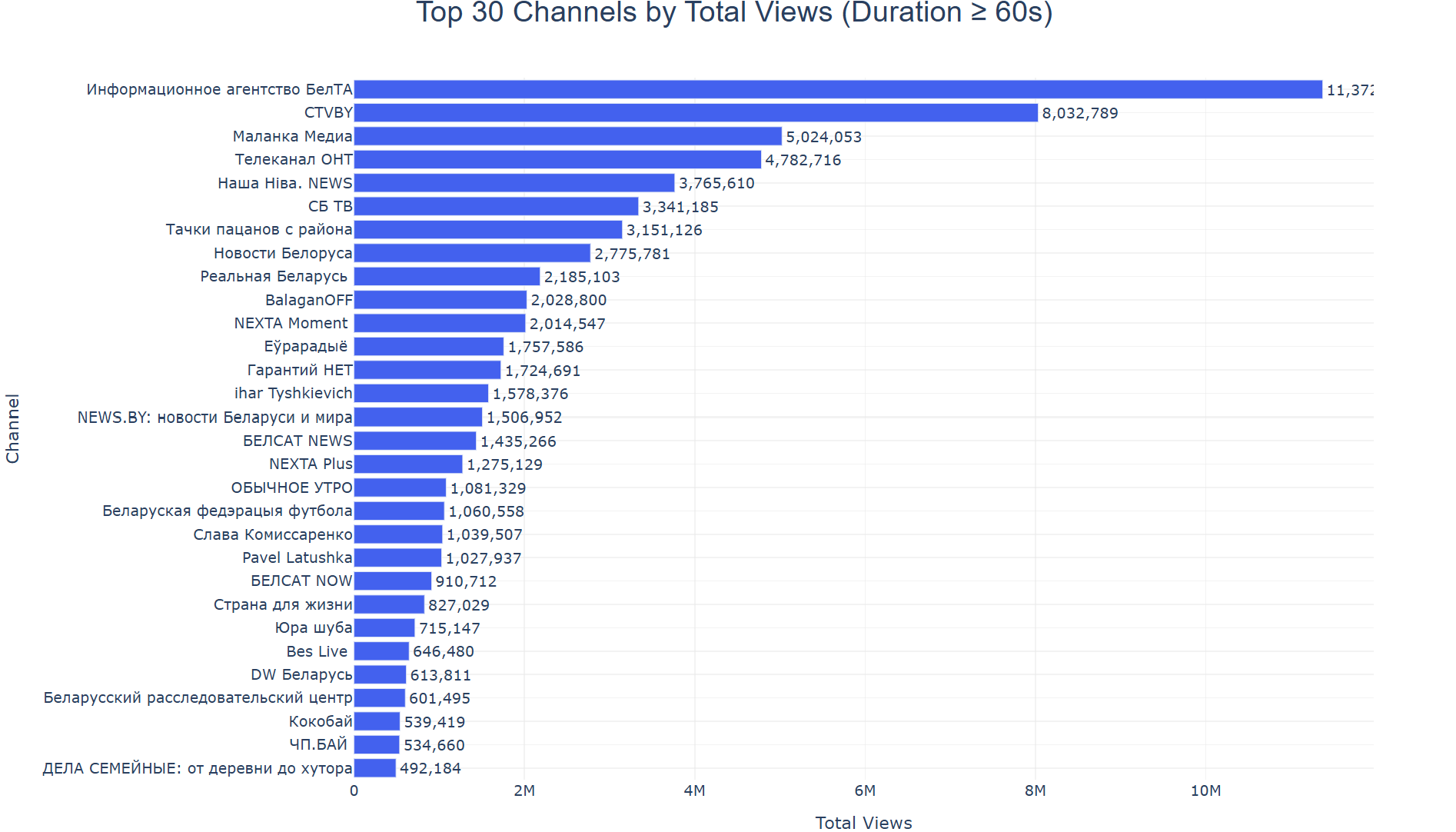 Топ30 каналов по просмотрам видео длительностью более 60 секунд, которые были размещены в июне 2025: