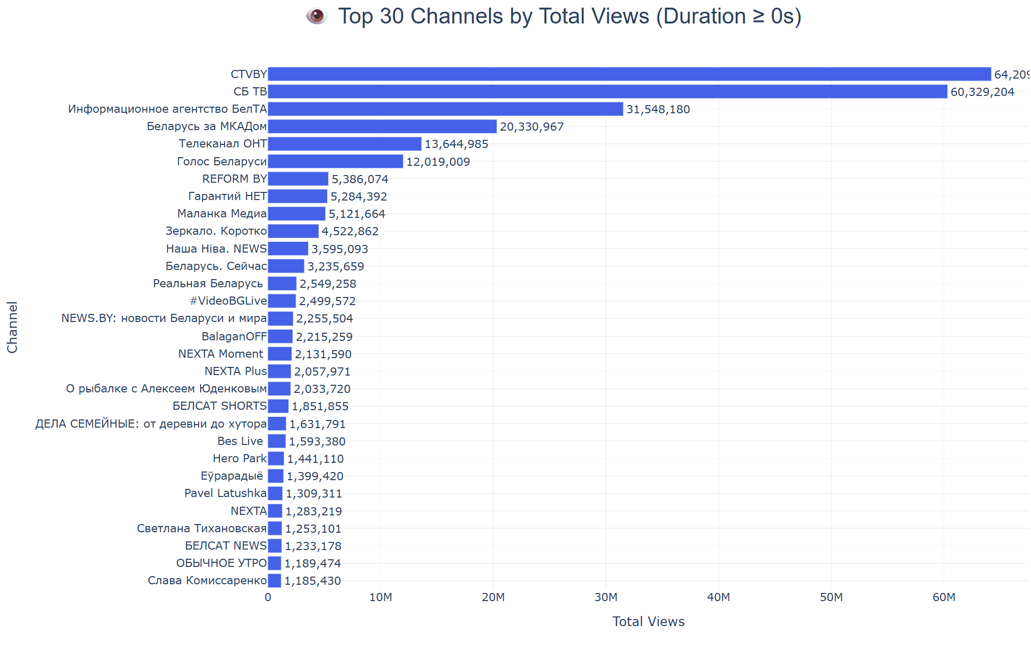 На основании данных регулярного мониторинга беларуских YouTube-каналов за июль 2025.