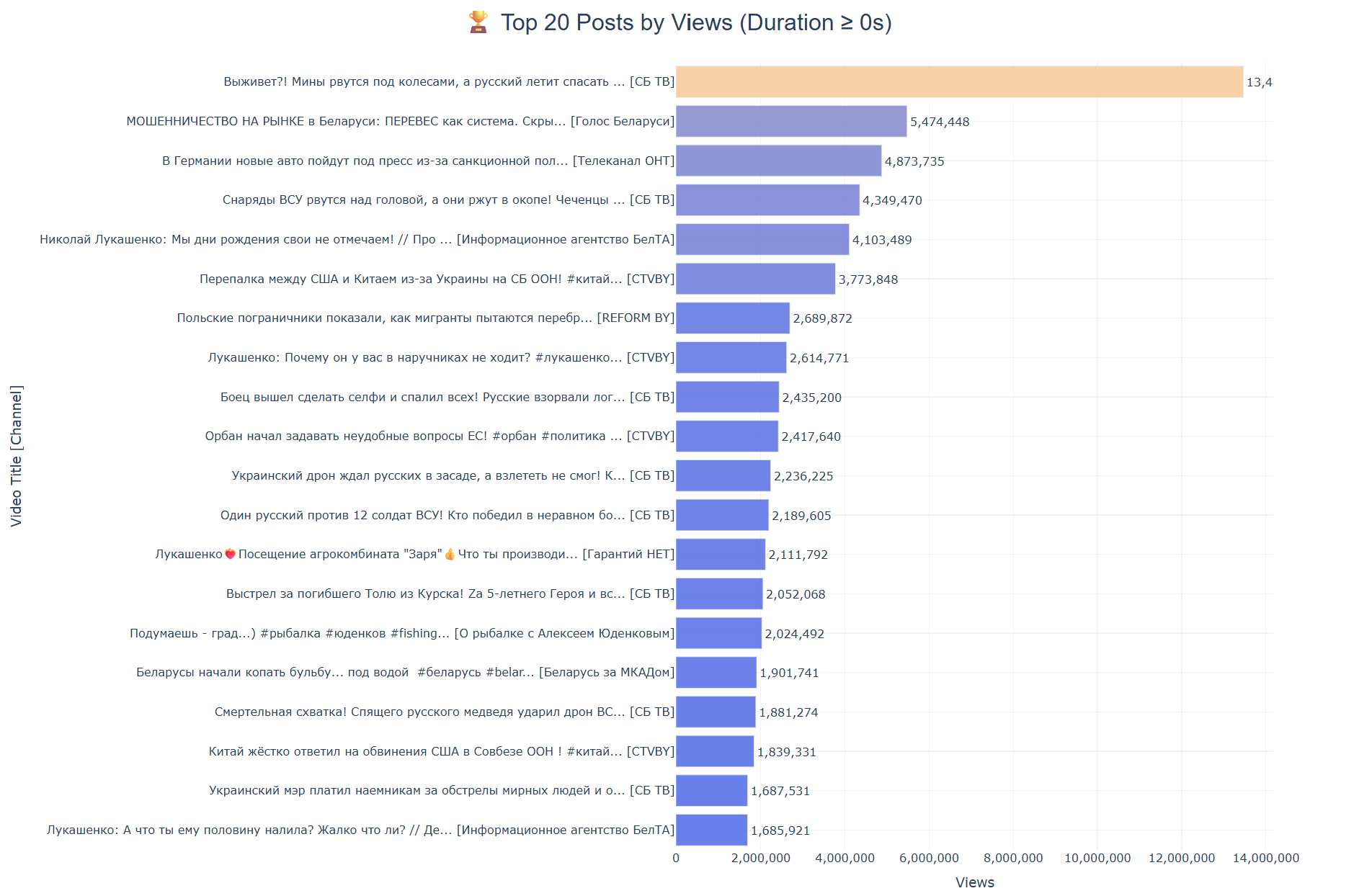 Были проанализированы и добавлены каналы с контентом опубликованные не более, чем год назад, с более 20% подписчиков из Беларуси и не менее 1 000 подписчиков.