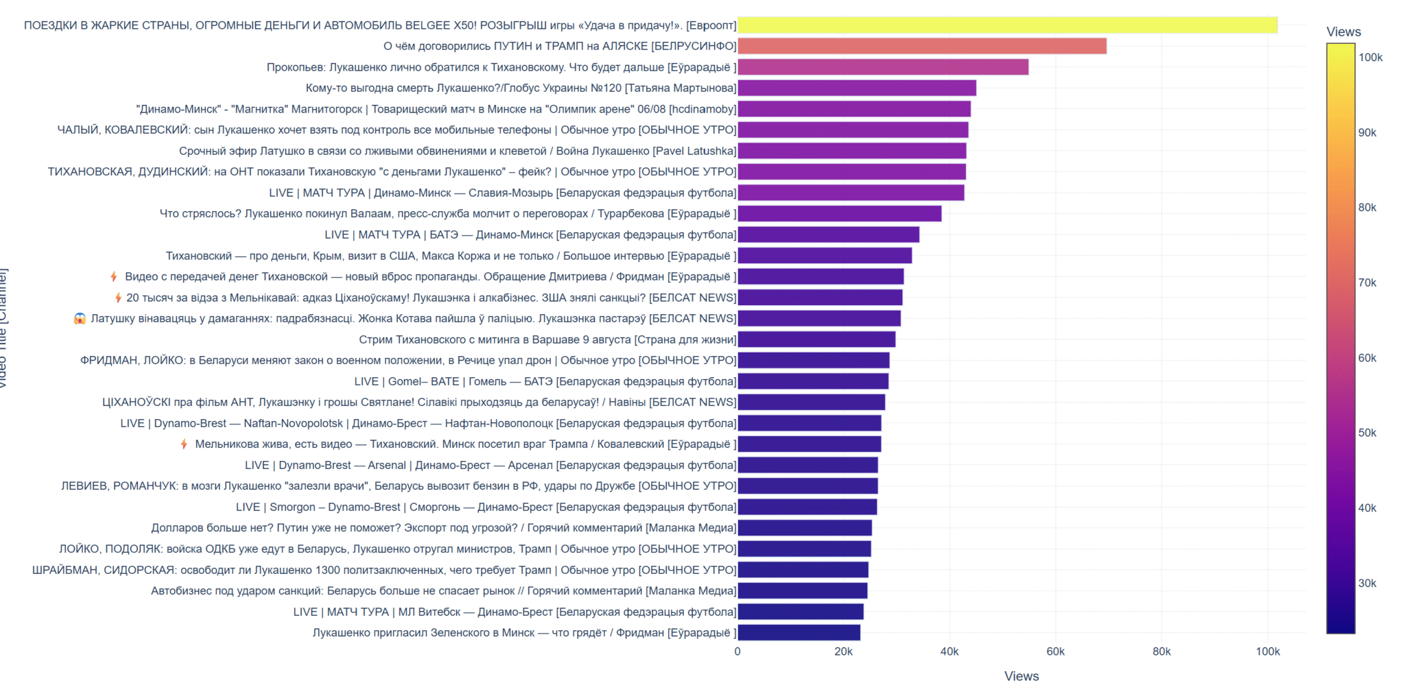 Беларуские YouTube-каналы, которые собрали больше всего просмотров своих стримов, проведеннных в августе 2025:
