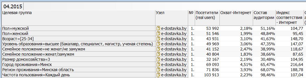 Общий охват составляет — 2,08% белорусской интернет-аудитории, в возрасте 15-74.