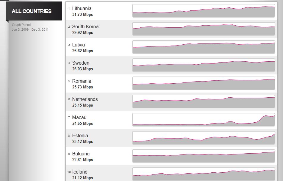 Очередной рейтинг скорости интернет-соединений от Net Index.